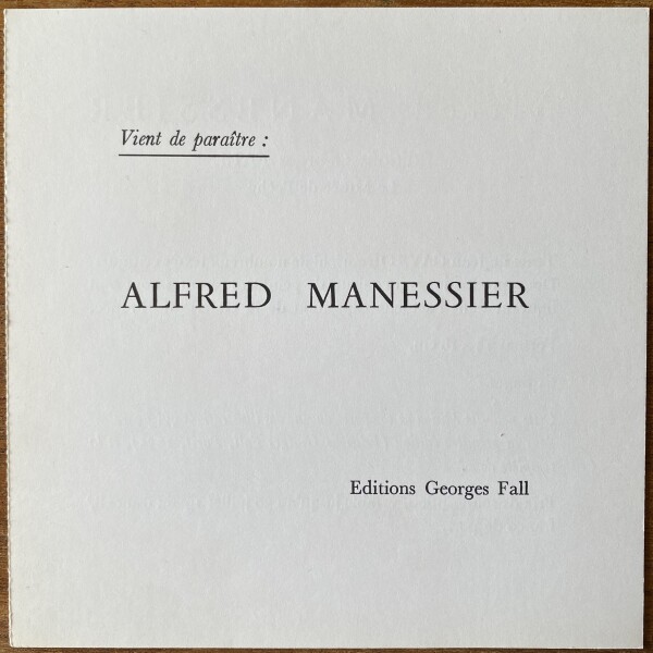 (Alfred Manessier, Jean Cayrol). Jean Cayrol. Alfred Manessier. Editions George Fall. (Le Musée de Poche)