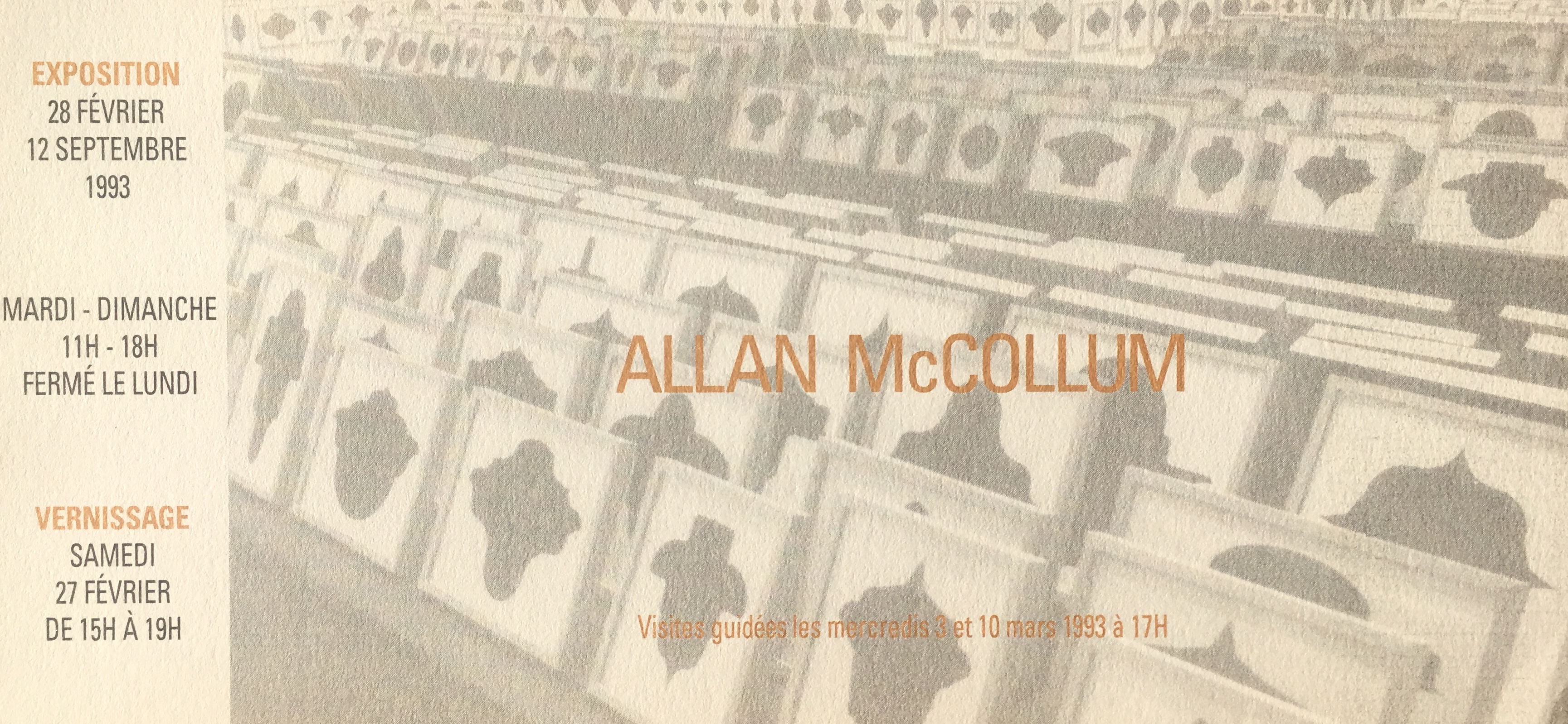 (Allan McCollum). Allan McCollum. Centre d’Art Contemporain, Genève, 27, 28 février – 12 septembre 1993