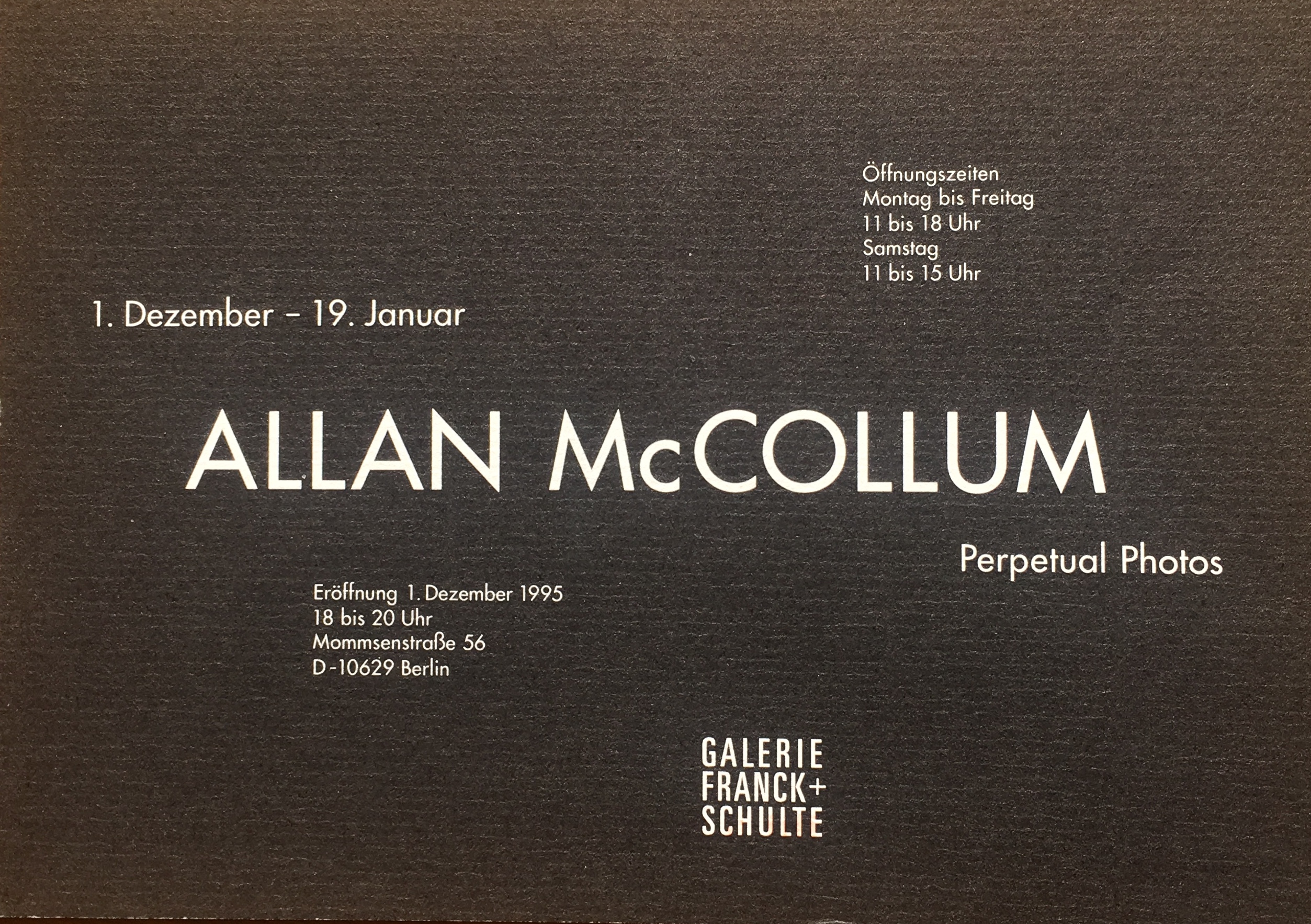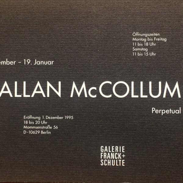 Allan McCollum. Perpetual Photos. Galerie Franck + Schute, Berlin, 1. Dezember 1995 – 19. Januar 1996