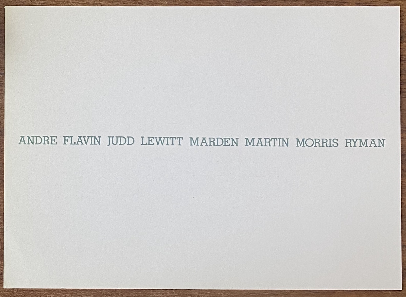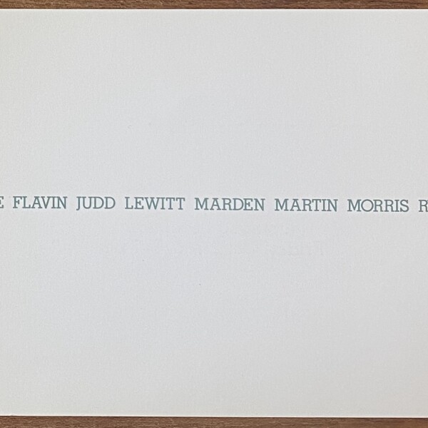 Andre Flavin Judd LeWitt Marden Martin Morris Ryman. John Weber Gallery, New York, October 5, 6-27, 1990