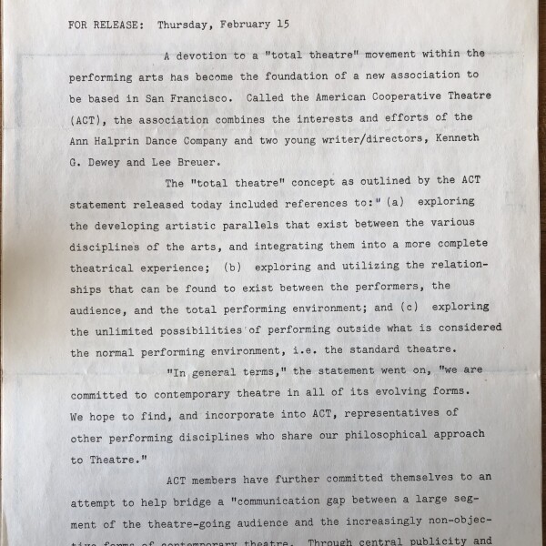Mission statement of ACT, founded by Ann Halprin, Ken Dewey, Lee Breuer, and Ron G. Davis