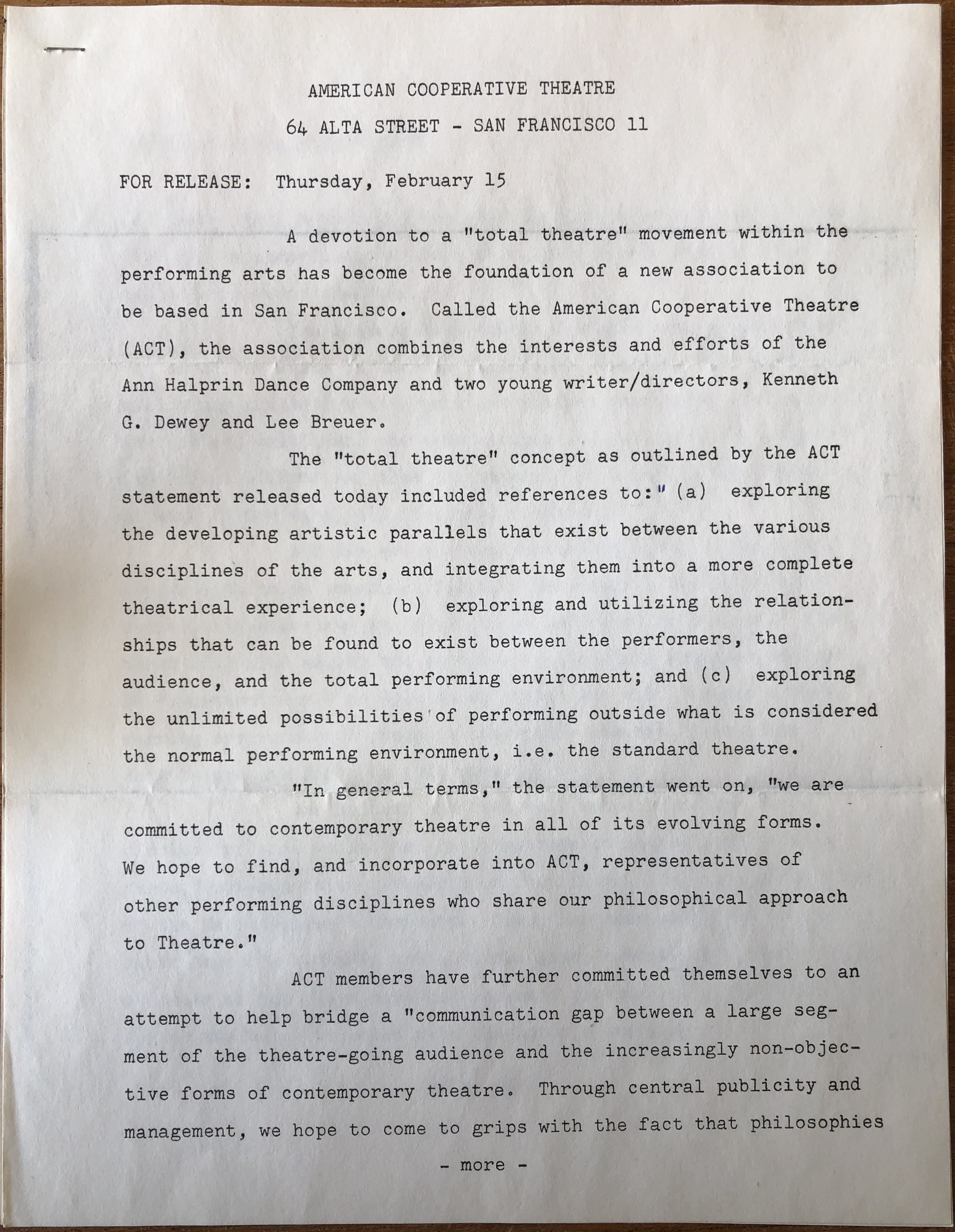 (Ann Halprin/Kenneth Dewey). American Cooperative Theatre.