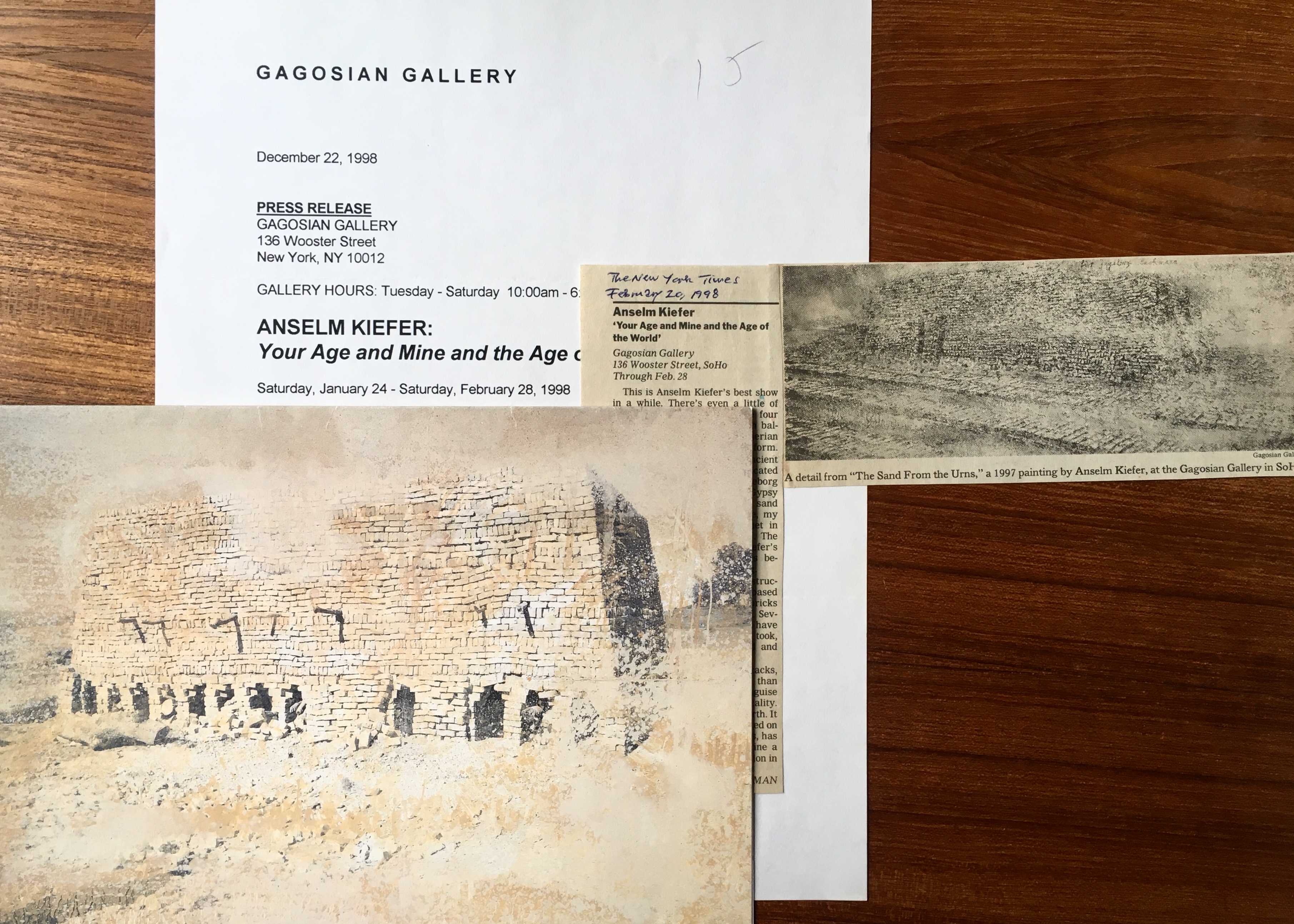 Anselm Kiefer. Dein und Mein Alter und das Alter der Welt / Your Age and Mine and the Age of the World. Gagosian Gallery, New York, January 24 – February 28, 1998