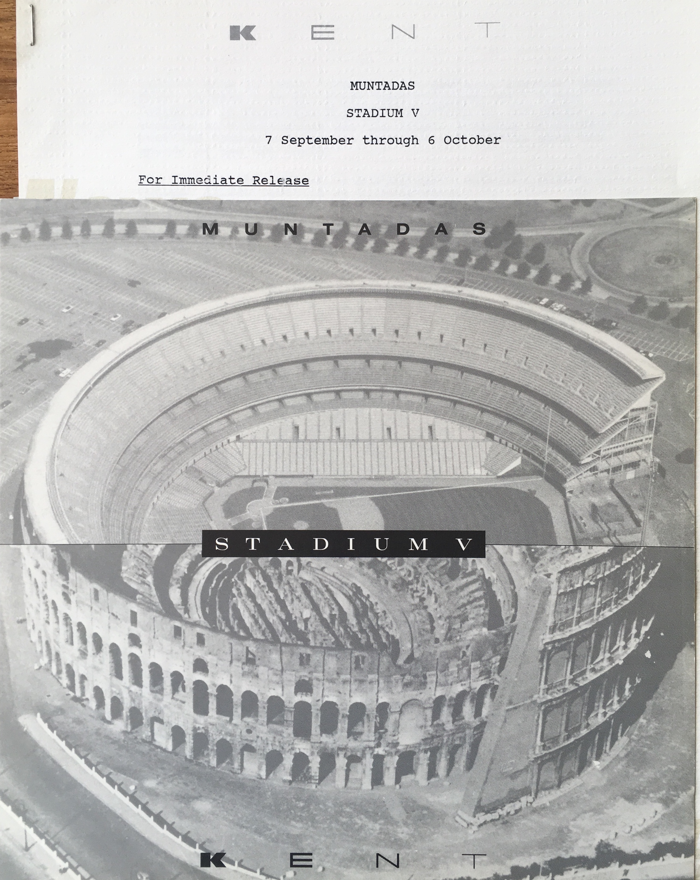 (Antoni Muntadas). Muntadas. Stadium V. Kent, New York, 7 September – 6 October, 1990