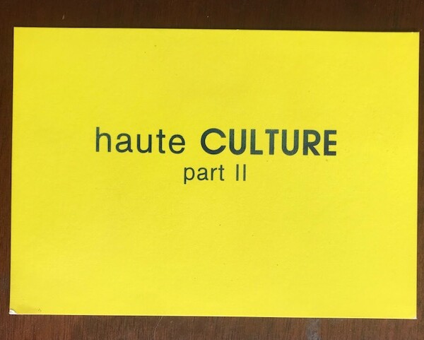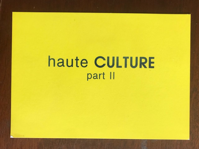 (Antoni Muntadas). The USC Atelier presents ‘haute CULTURE part II’ by Muntadas. A video installation at Robinson’s second level entrance in the Santa Monica Place shopping center [Los Angeles]. 2 March 1985.