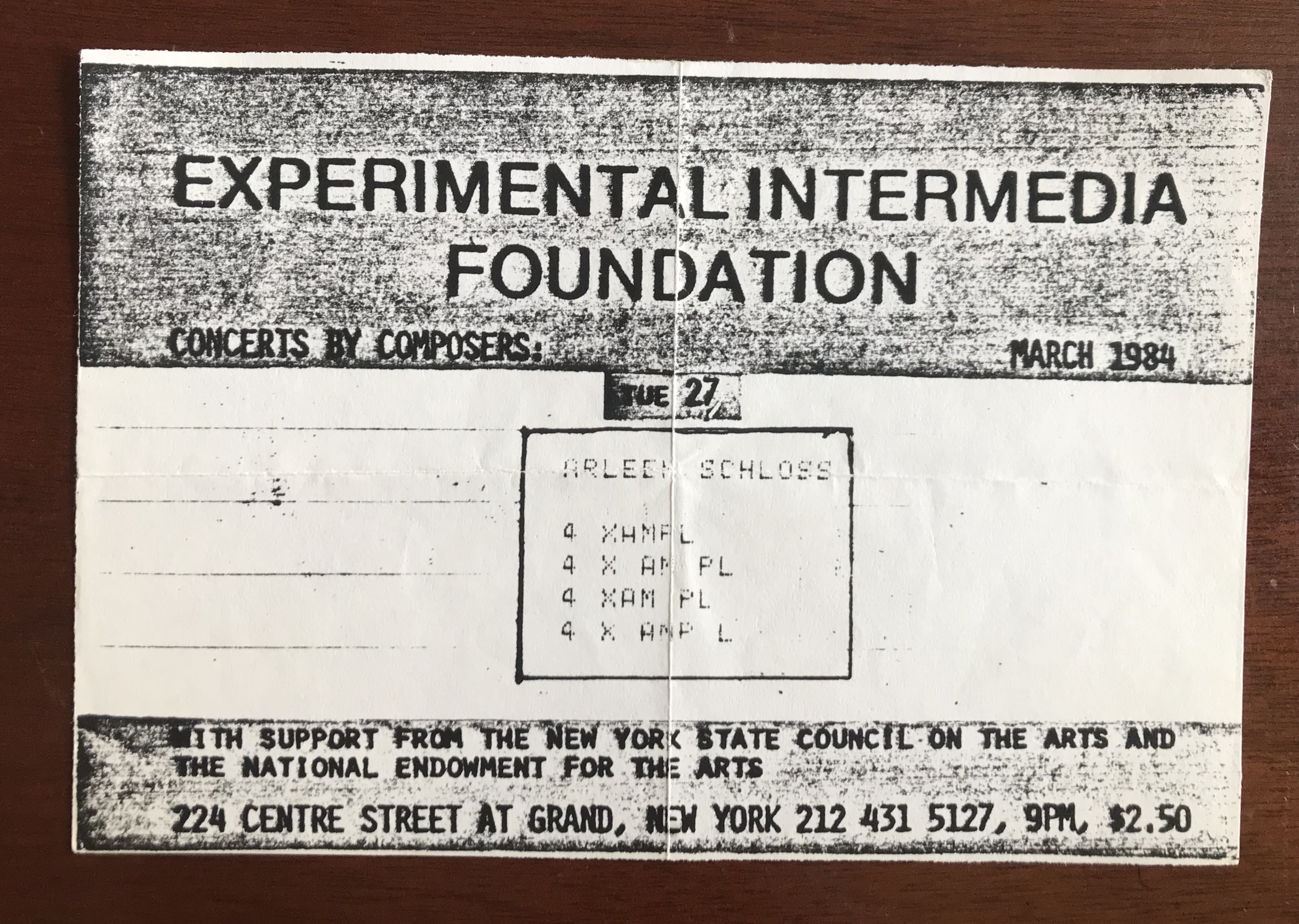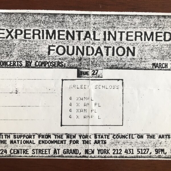 (Arleen Schloss). Concerts by Composers: Arleen Schloss. Experimental Intermedia Foundation, New York, 27 March 1984