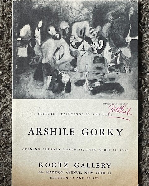 (Arshile Gorky). Selected Paintings by the Late Arshile Gorky. Kootz Gallery, New York, March 28 – April 24, 1950