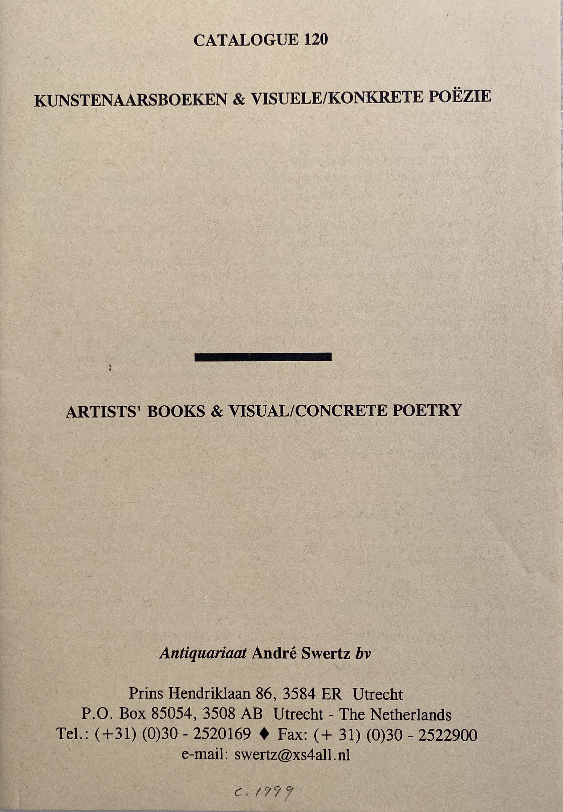 Artists’ book & visual/concrete poetry. Antiquariat André Swertz, Utrecht, [1999?]. (Catalogue 120)