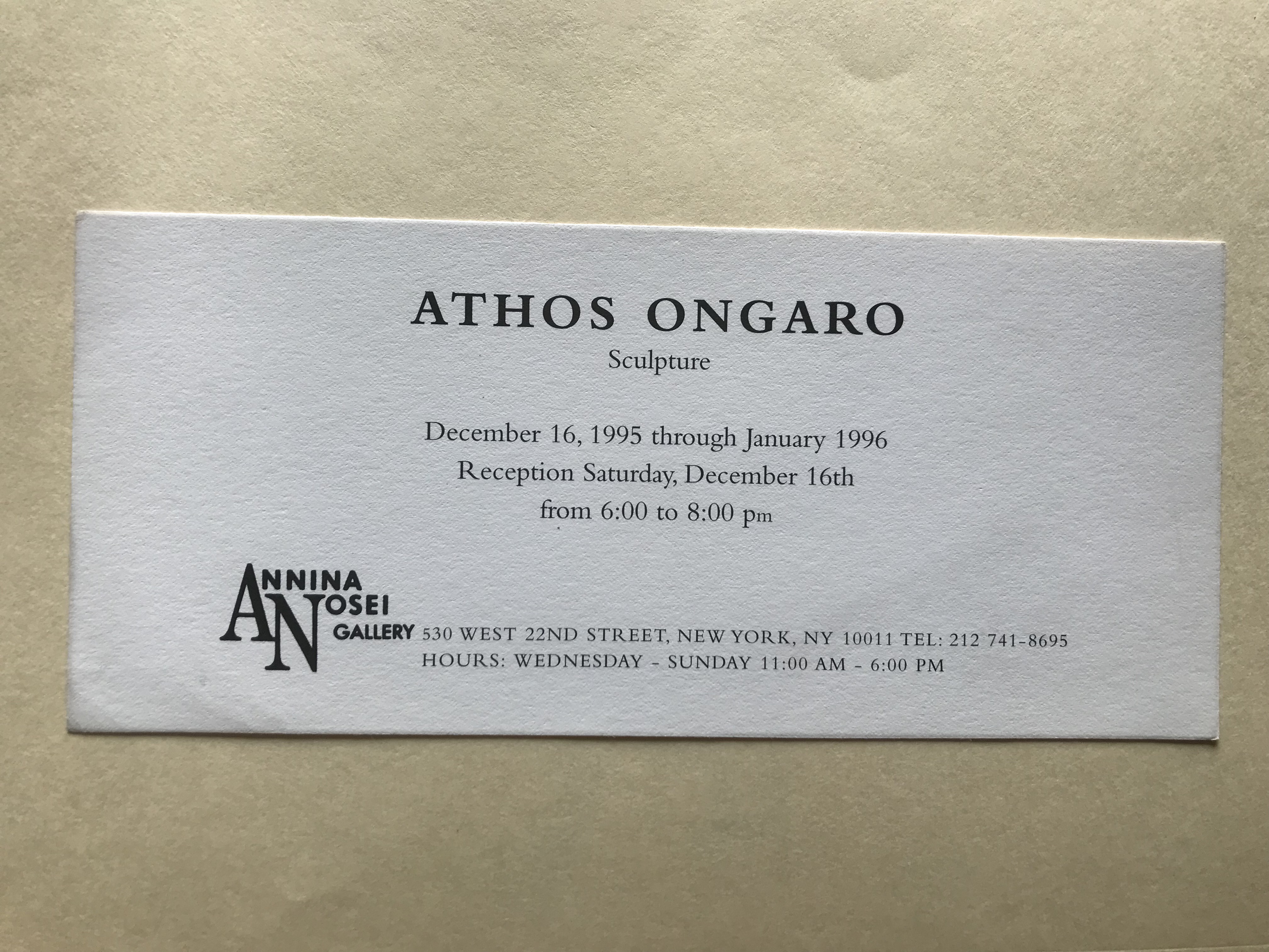 (Athos Ongaro). Athos Ongaro. Sculpture. Annina Nosei Gallery, New York, December 16, 1995 through January 1996