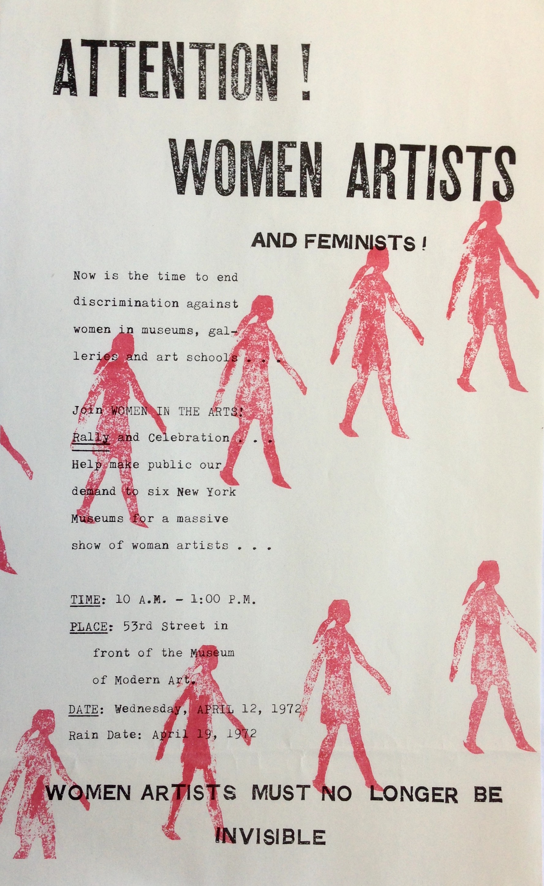 Attention! Women artists and feminists! / Women artists must no longer be invisible. Museum of Modern Art, New York, April 12, 1972