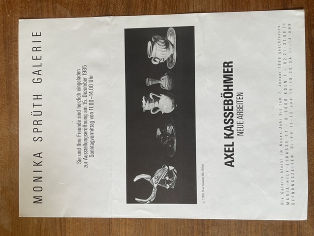 Axel Kasseböhmer. Neue Arbeiten. Monika Sprüth Galerie, Köln, 15. Dezember 1985