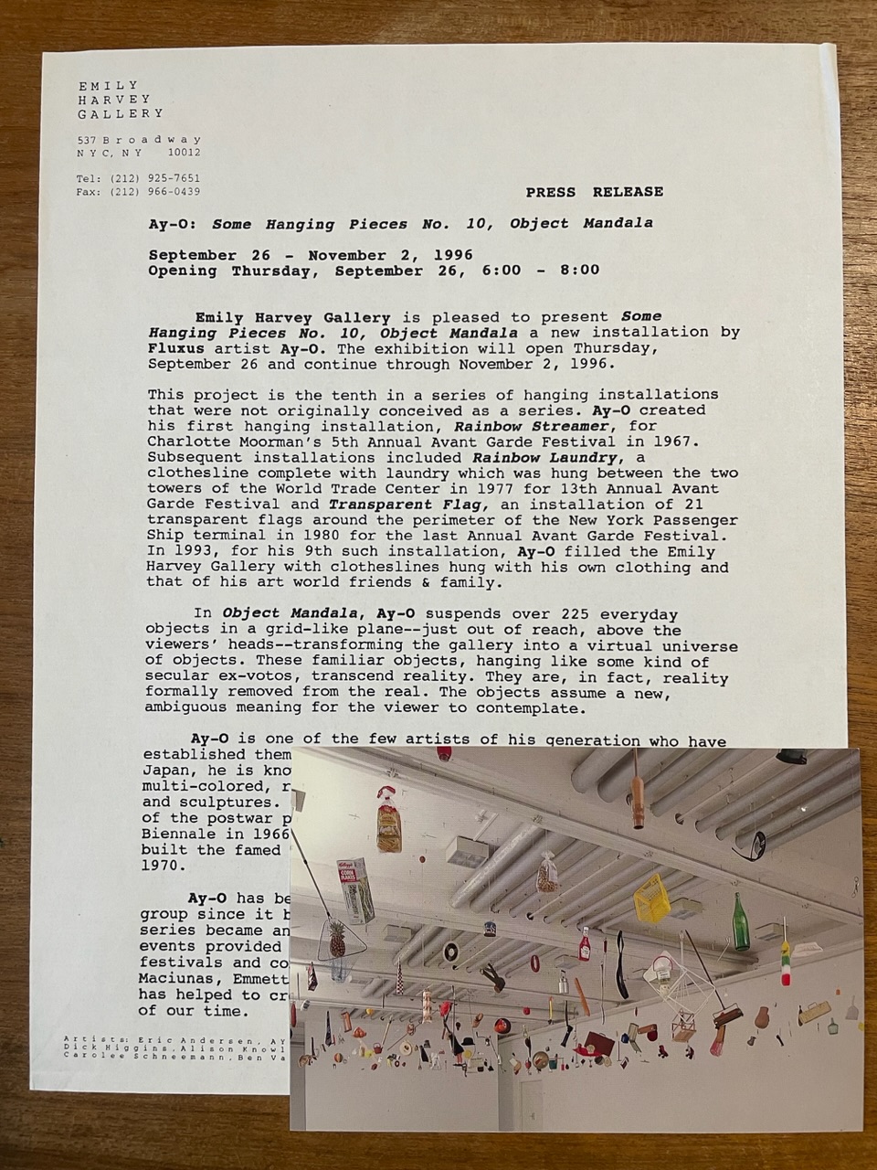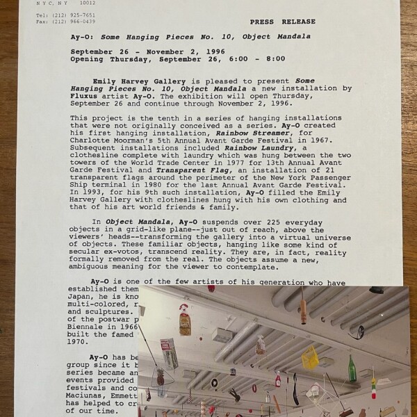 Ay-O. Some Hanging Pieces No. 1. Object Mandala. Emily Harvey Gallery, New York, September 26 – November 2, 1996