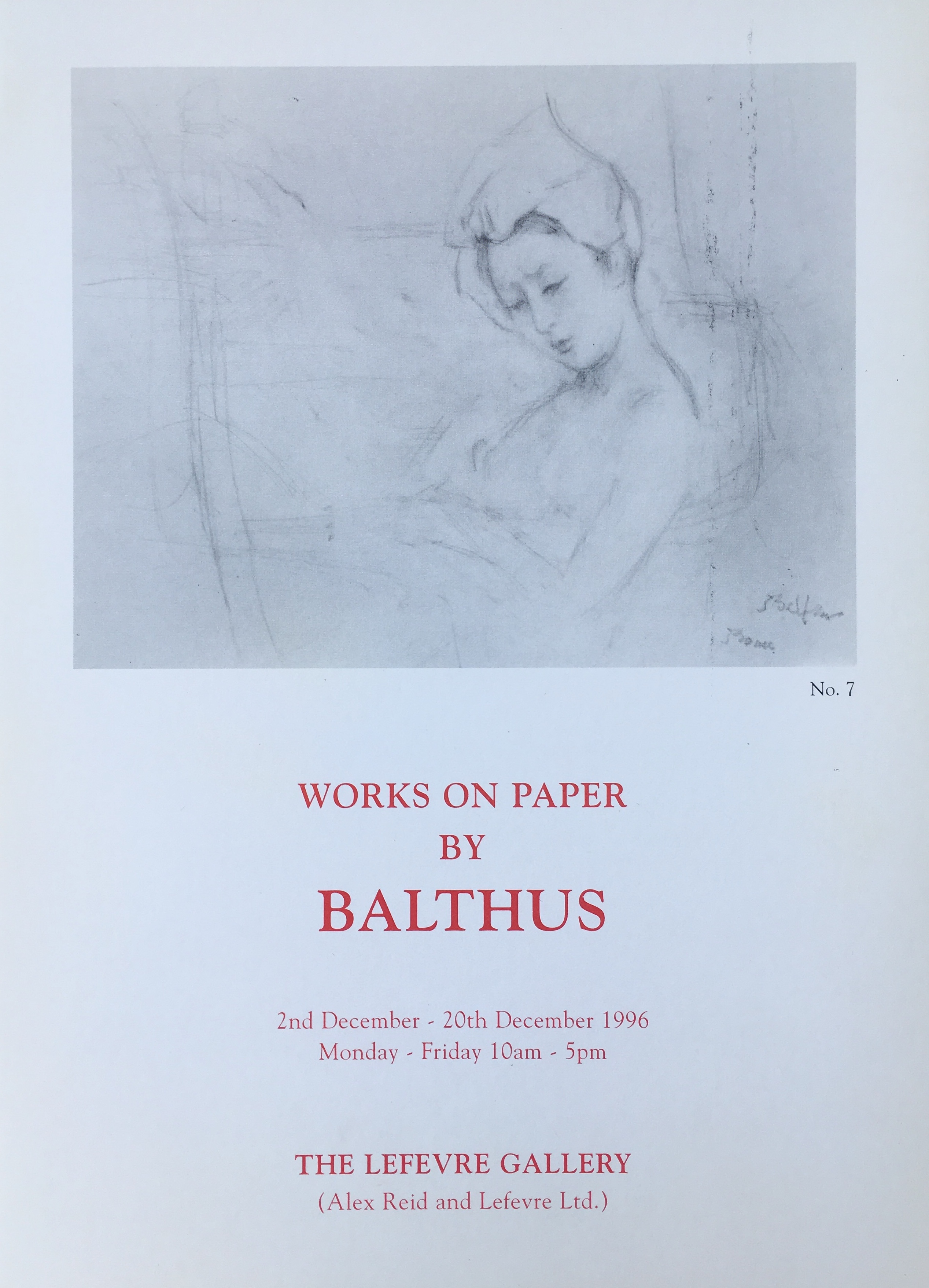 (Balthus). Works on paper by Balthus. The Lefevre Gallery, London, 2-20 December 1996