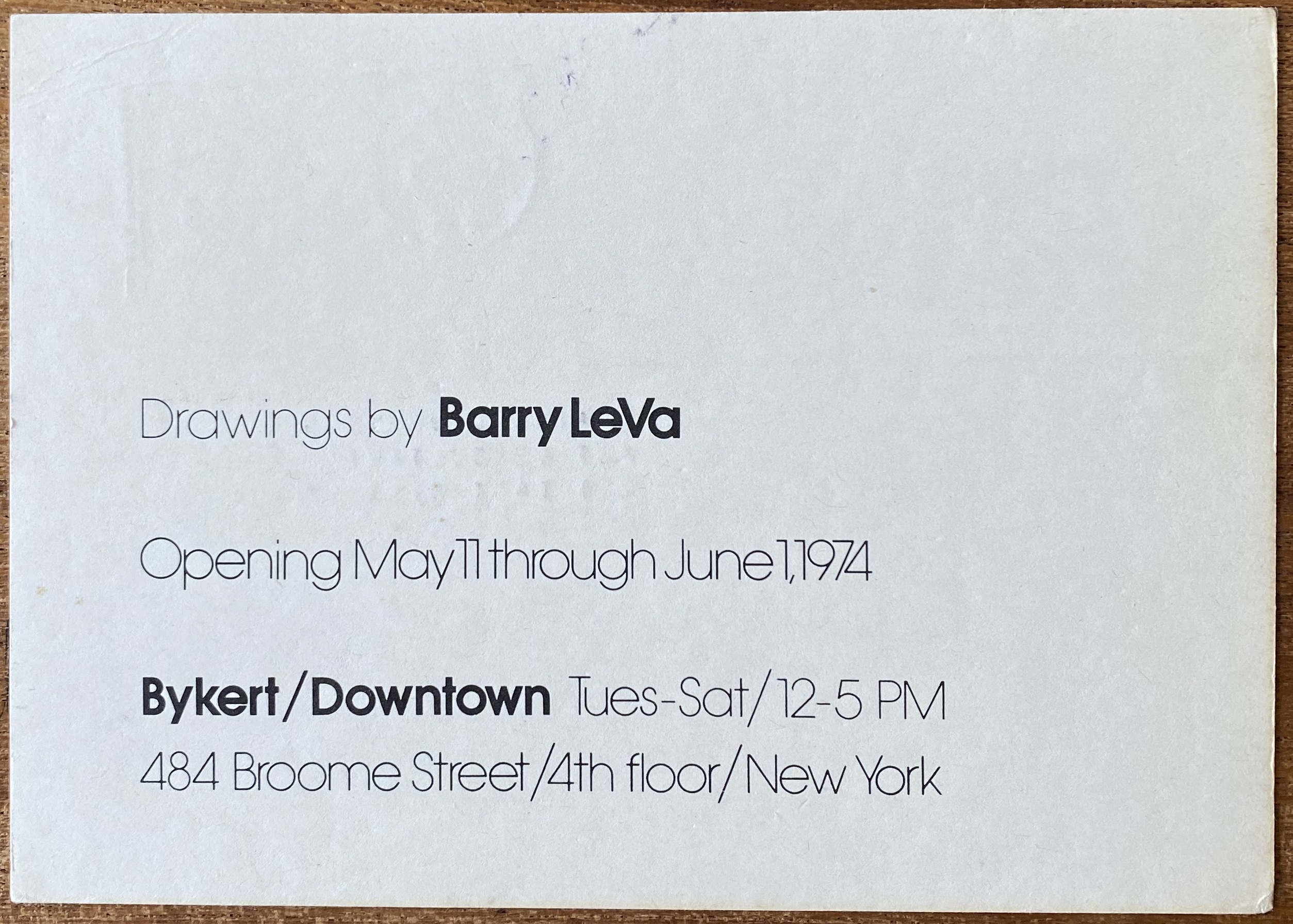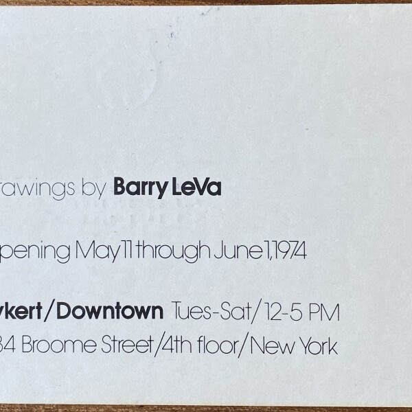 (Barry Le Va). Drawings by Barry LeVa (sic). Bykert / Downtown, New York, May 11 – June 11, 1974