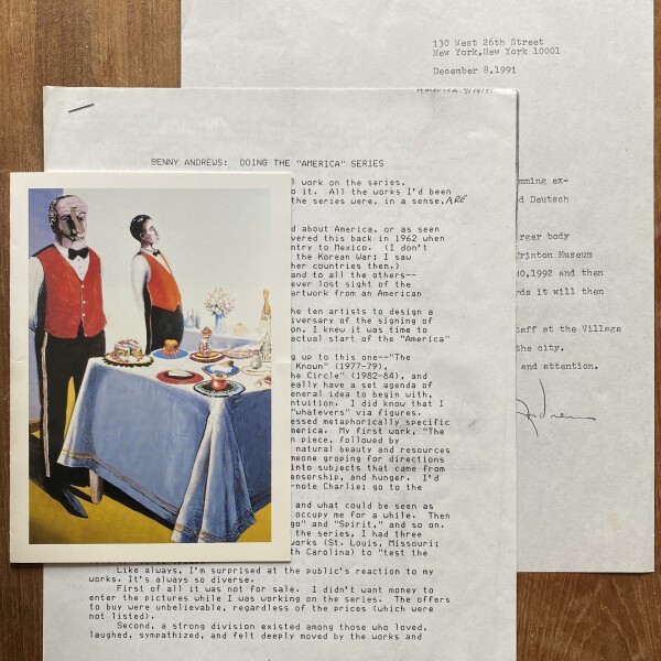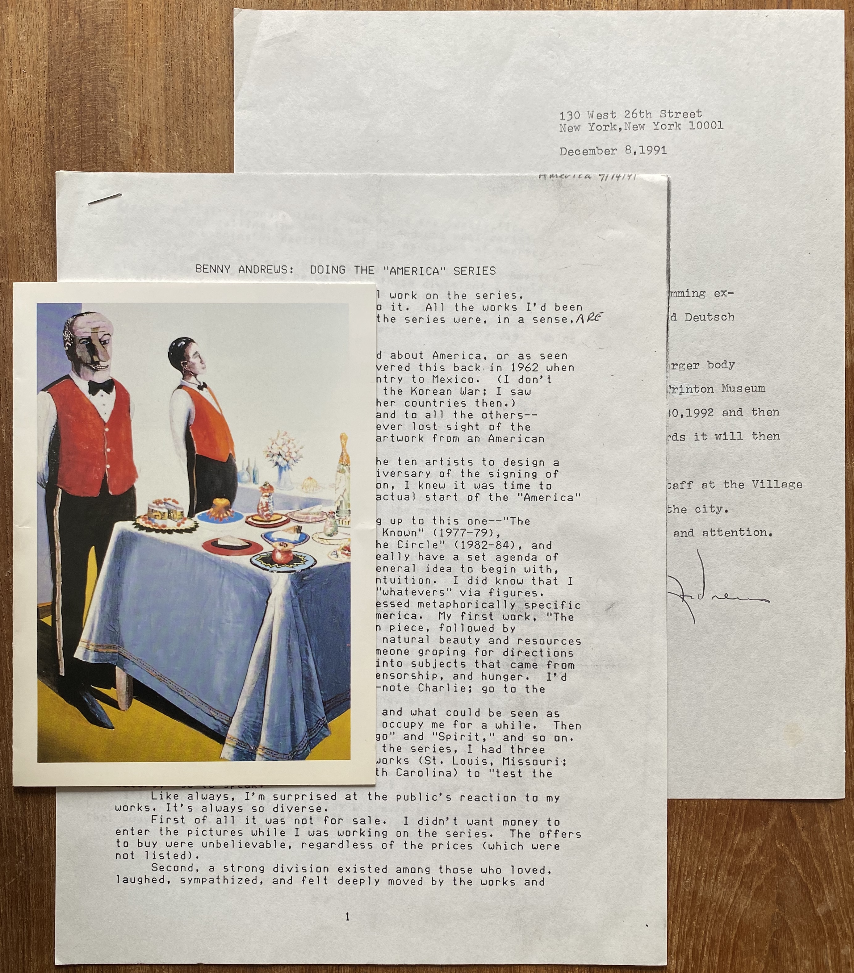 – Benny Andrews” Doing the America Series.” Photocopy of 2-page (=sheets) typescript