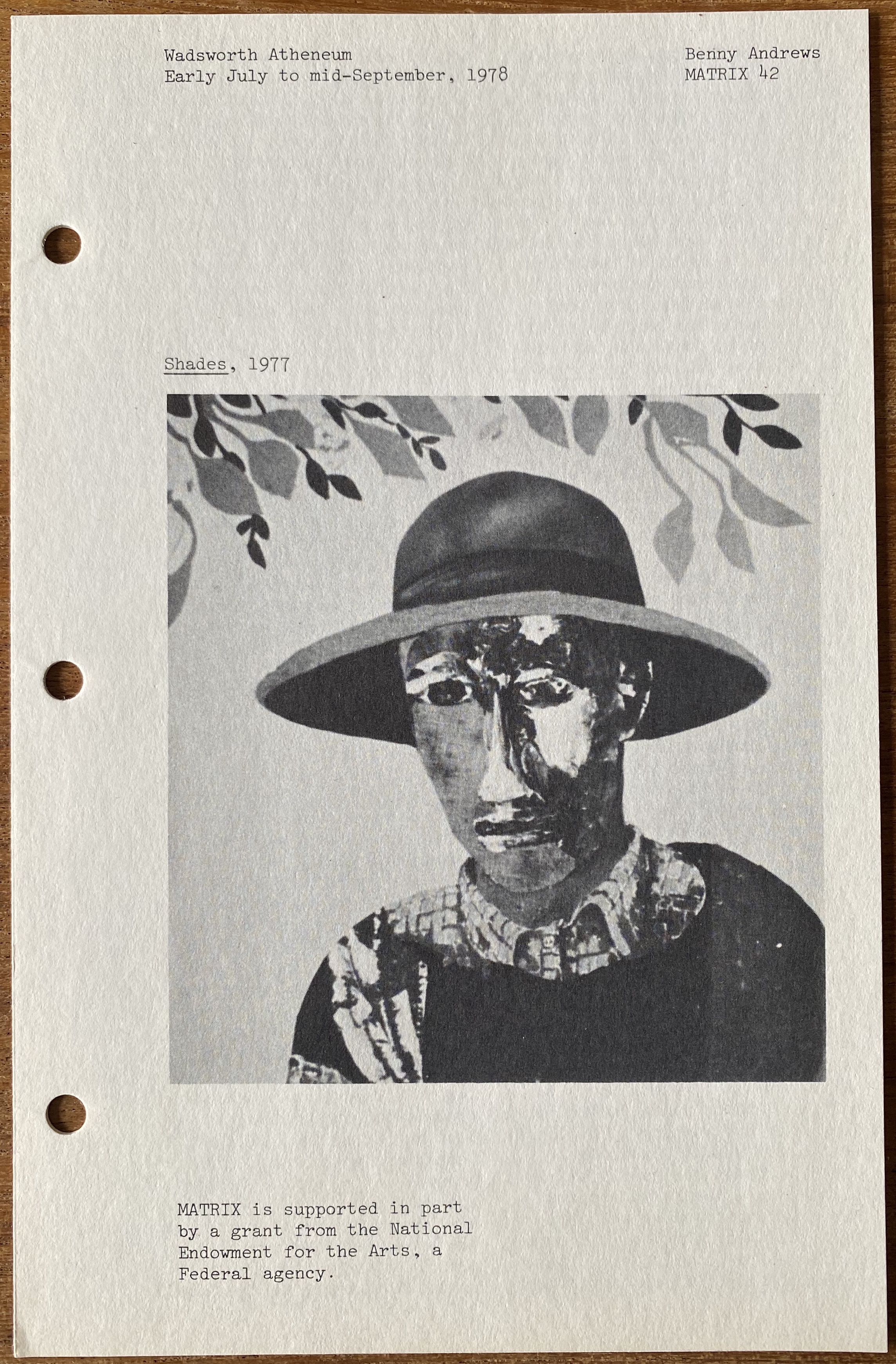 (Benny Andrews). Benny Andrews. Wadsworth Atheneum, Hartford, Connecticut, Early July to mid-September 1978. (Matrix 42)