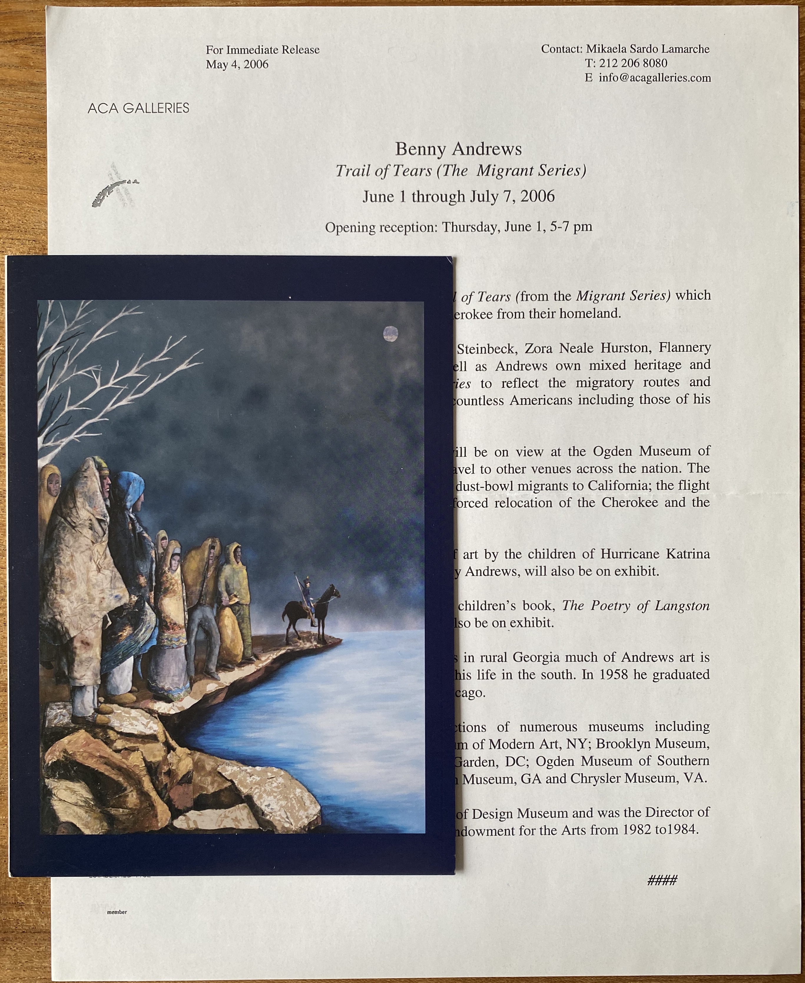 Benny Andrews. The Trail of Tears (The Migrant Series). ACA Galleries, New York, June 7 – July 7, 2006