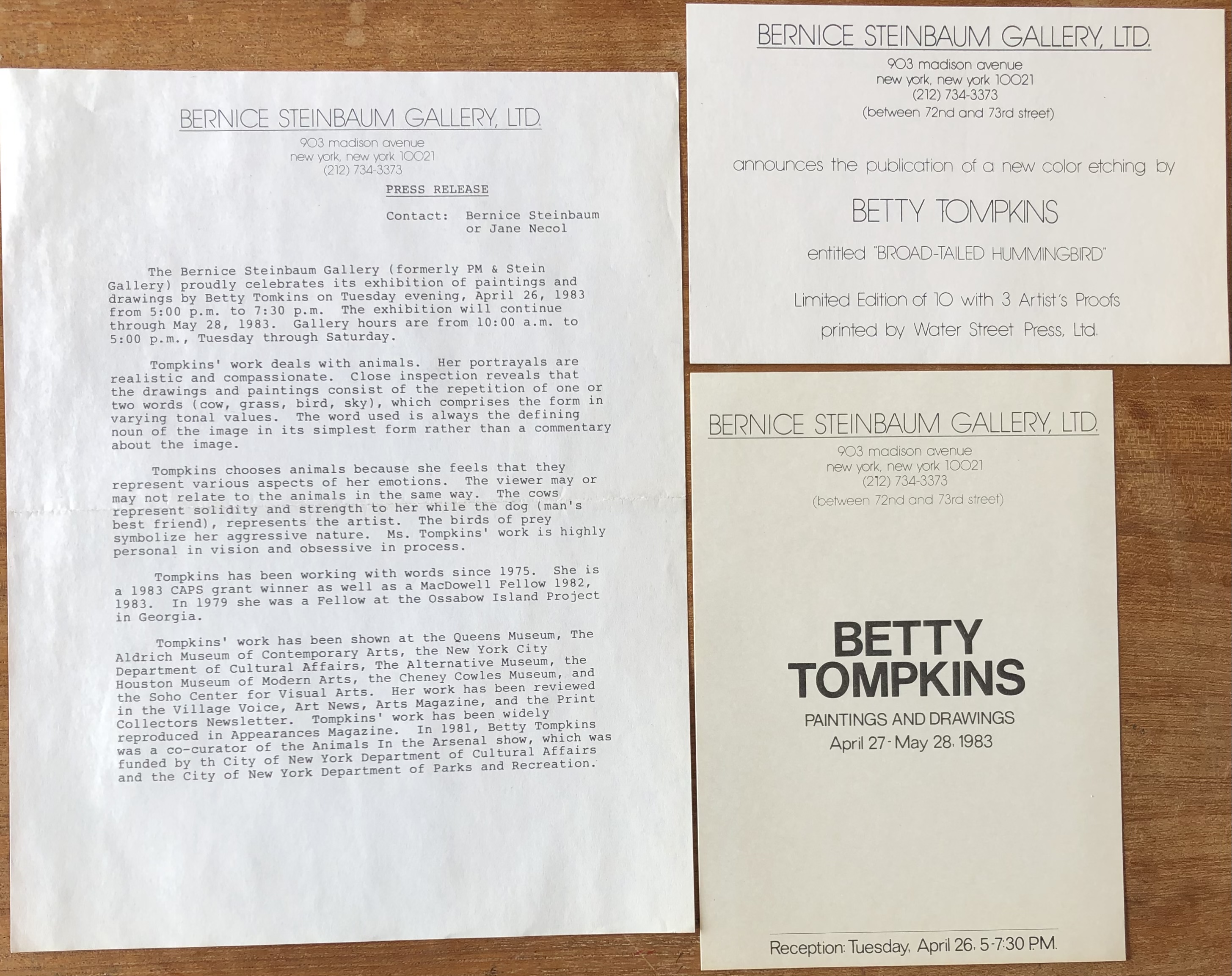 Betty Tompkins. Paintings and Drawings. Bernice Steinbaum Gallery, Ltd., New York, April 27 – May 28, 1983