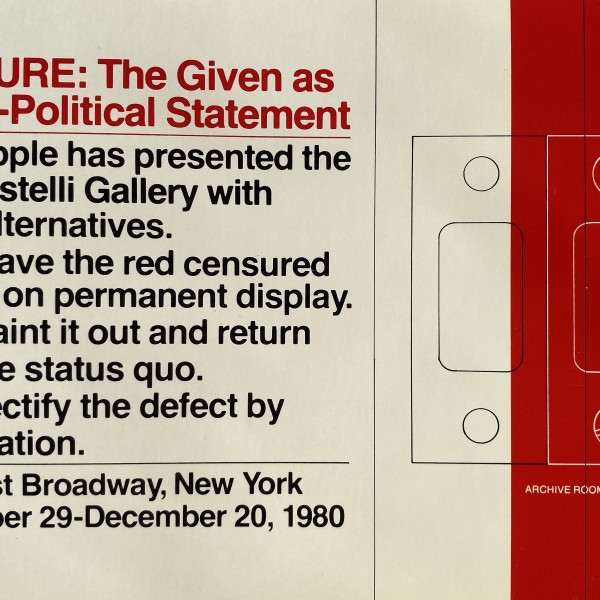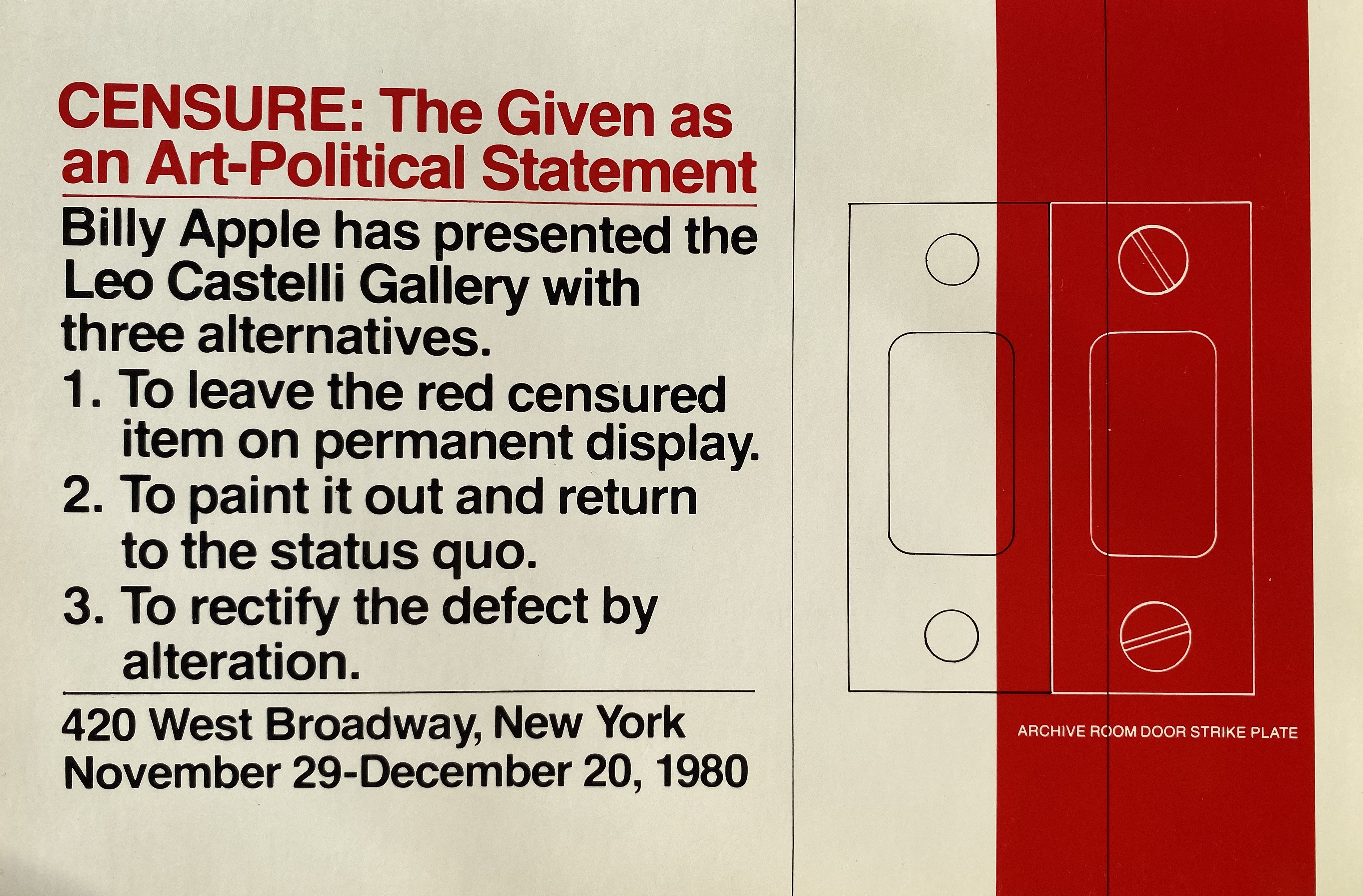 Billy Apple. Censure: The Given as an Art-Political Statement. Leo Castelli, New York, November 29 – December 20, 1980