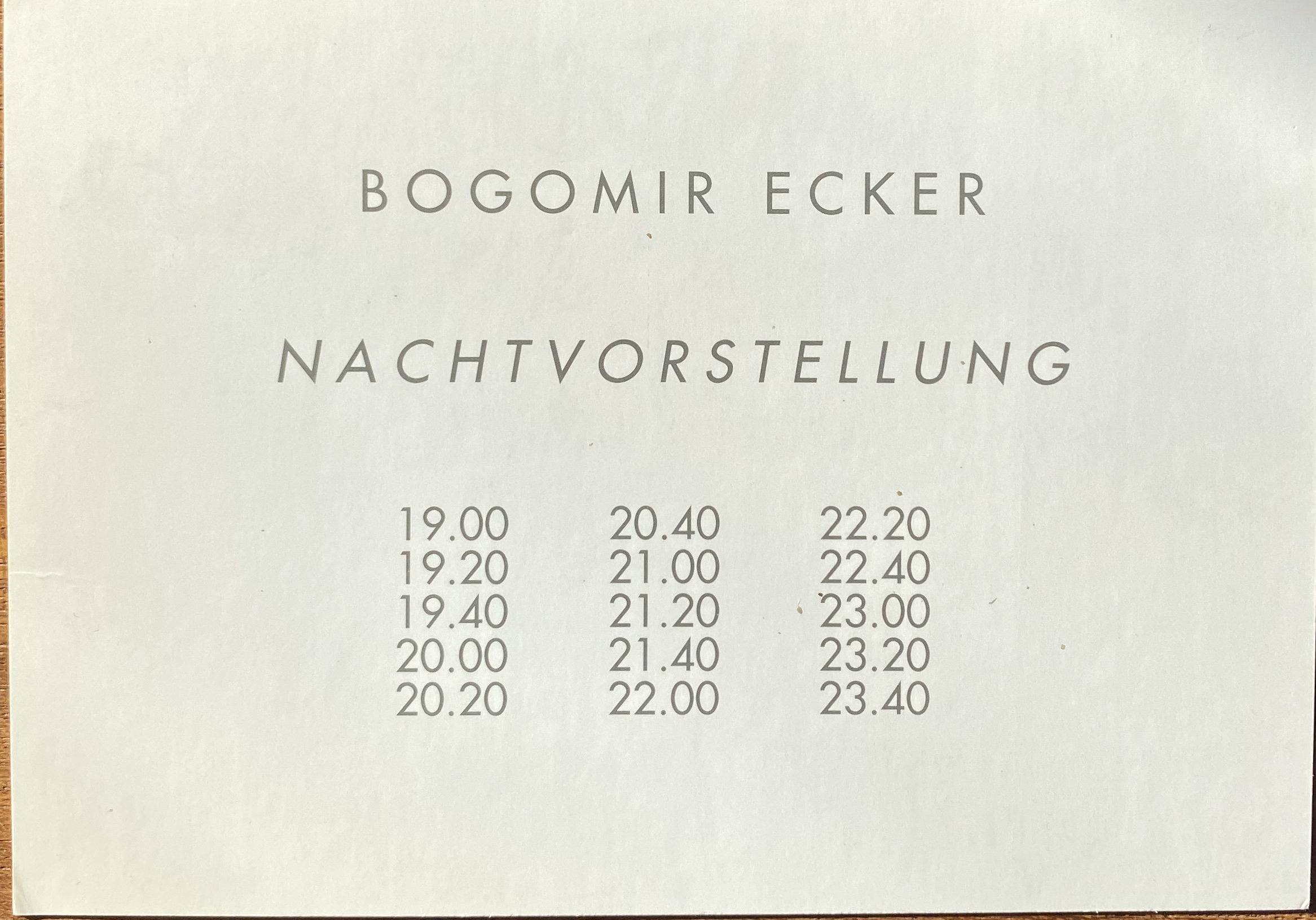 Bogomir Ecker. Nachtvorstellung. 1980. Produzentengalerie Hamburg, Hamburg, 8.-23. Dezember 1993