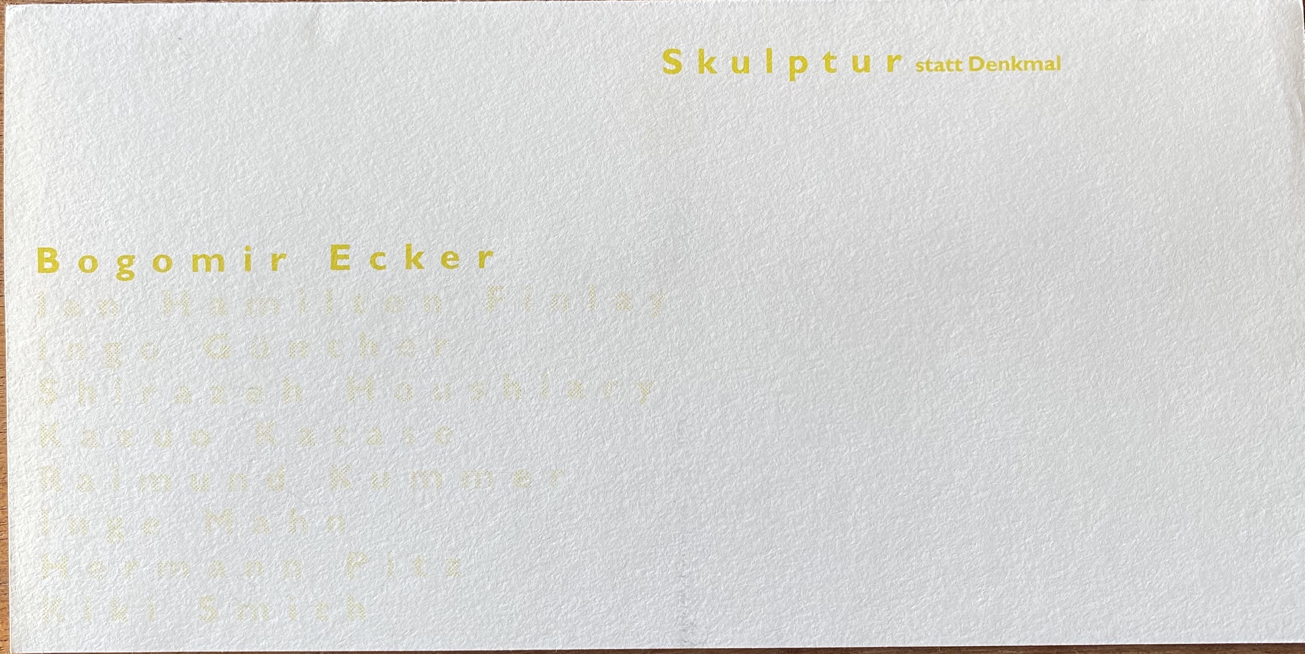 Bogomir Ecker. Skulptur Denkmal. Düsseldorf, 28.11.-1994 – 15.1.1995 Folder 4-1/8 x 8-1/4″ / 10.5 x 21cm