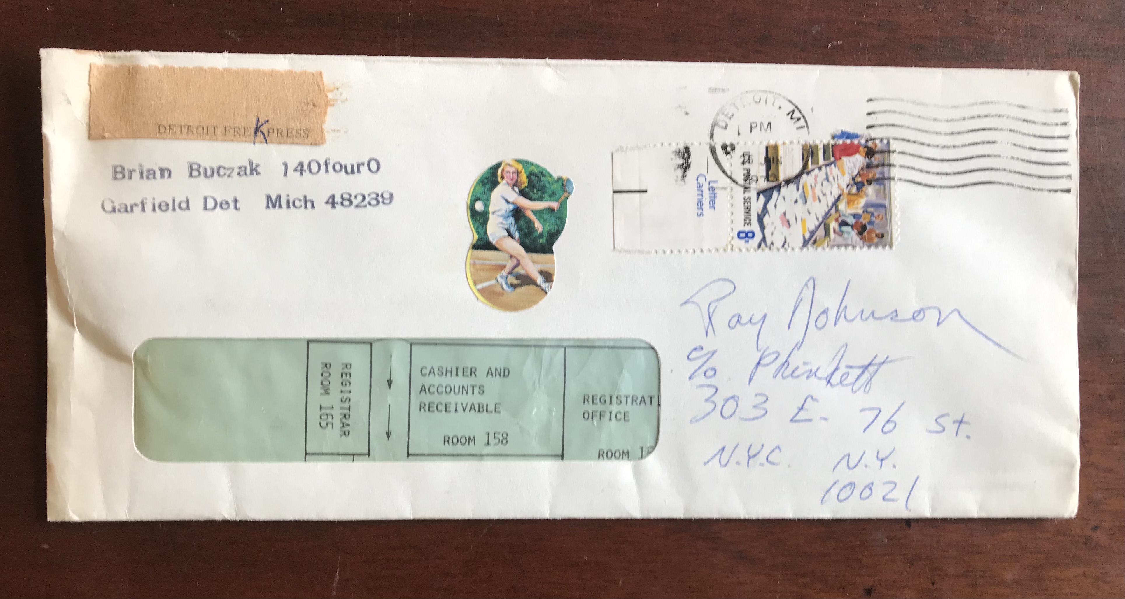 Postmarked Detroit, Michigan, 25 June 1973