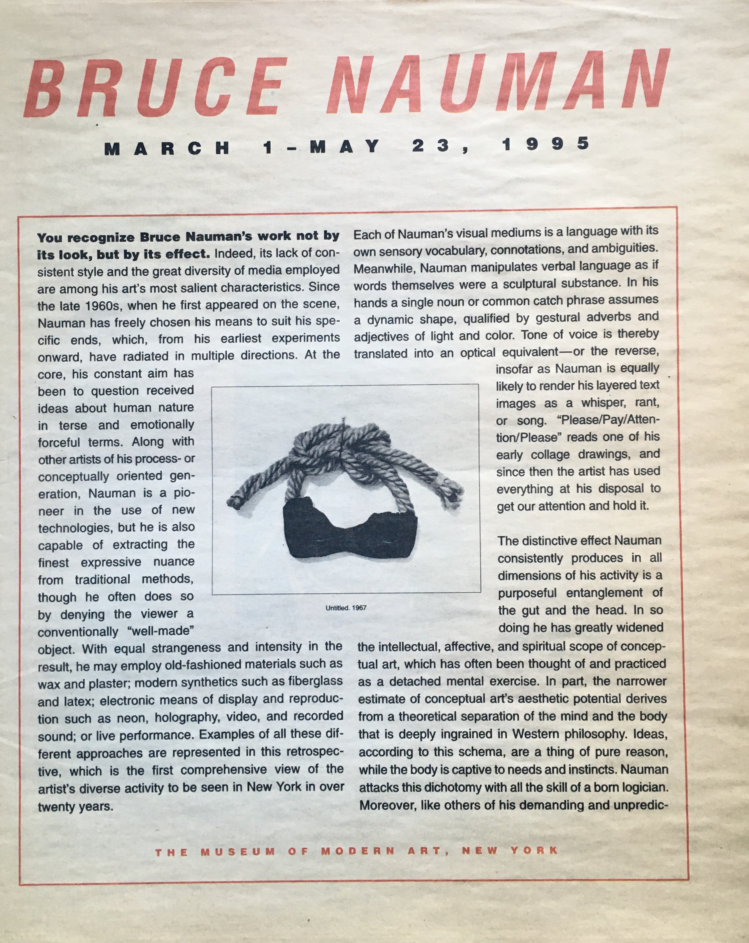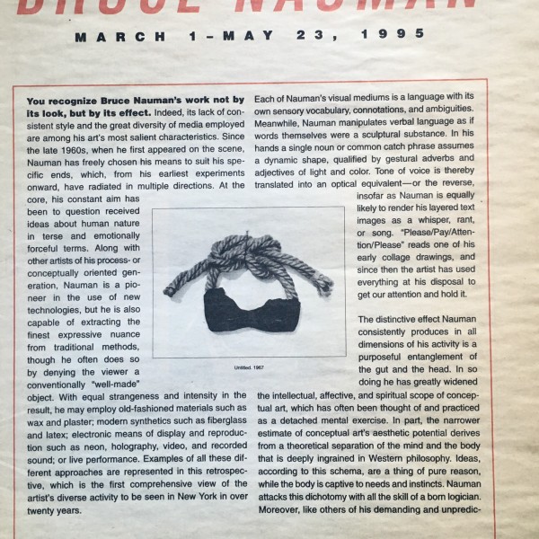 (Bruce Nauman). Bruce Nauman. The Museum of Modern Art, New York, March 1 – May 23, 1995