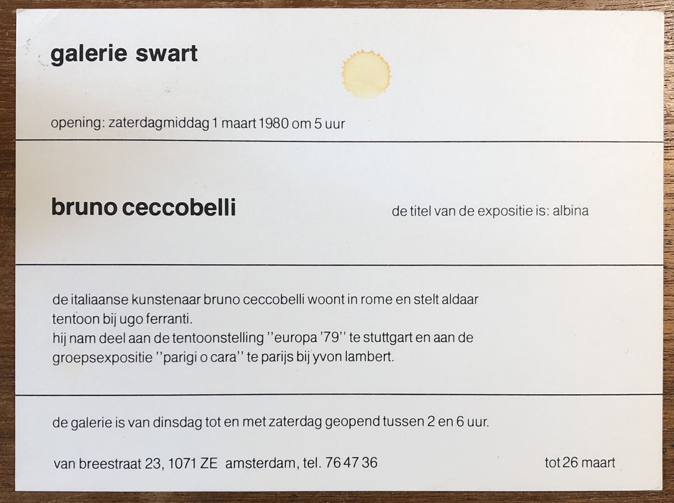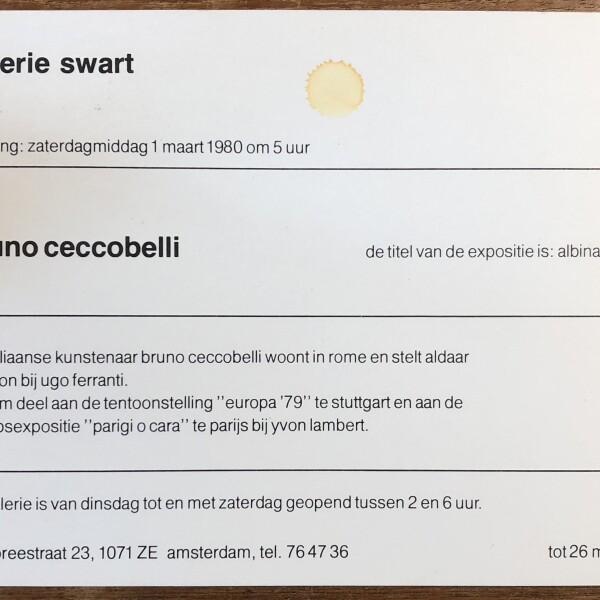 Bruno Ceccobelli. Albina. Galerie Swart, Amsterdam, 1–26 maart 1980