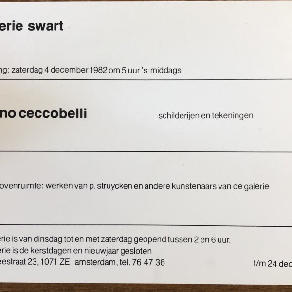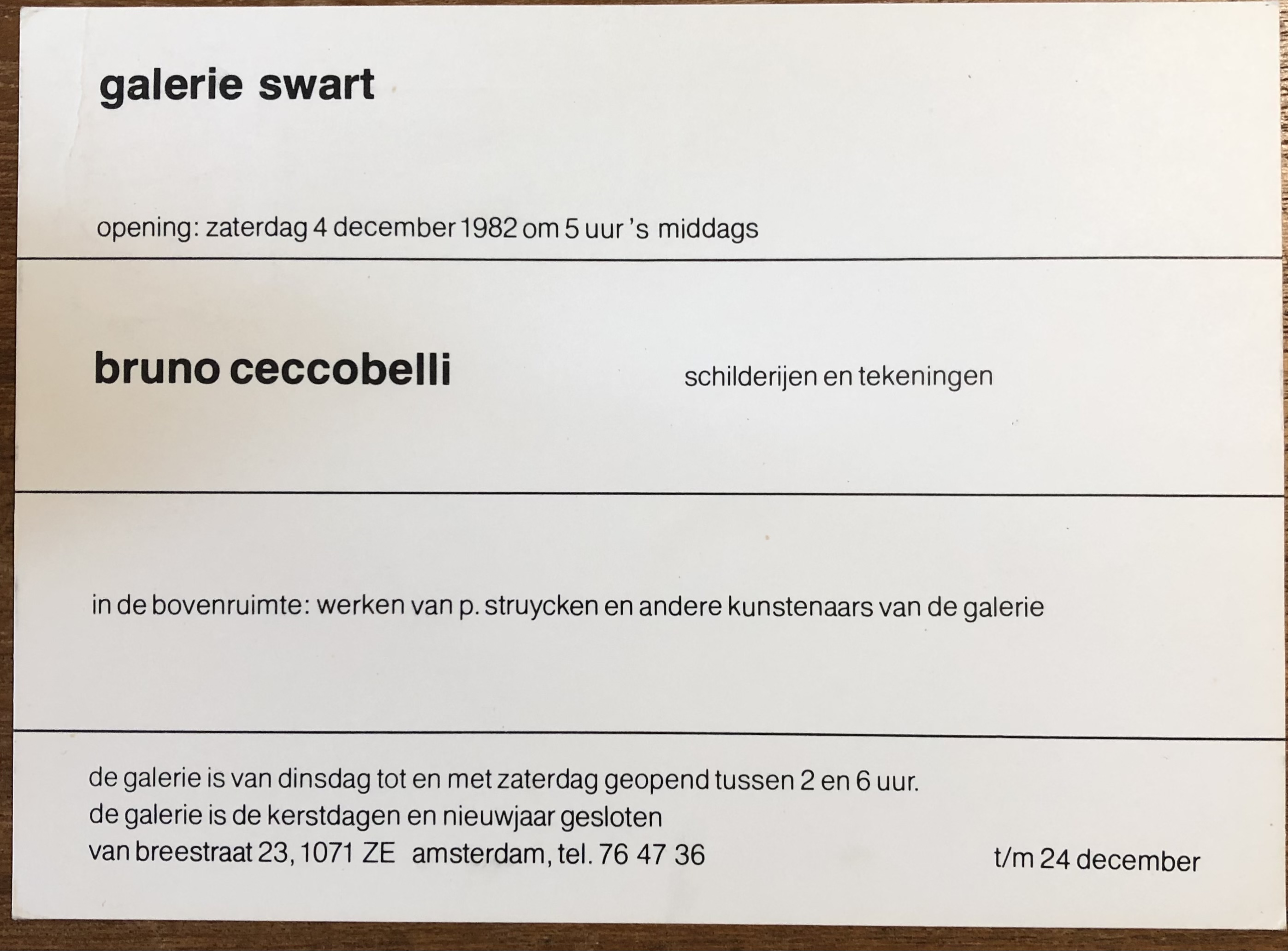 Bruno Ceccobelli. Schilderijen en tekeningen. Galerie Swart, Amsterdam, 4 – 24 December 1982