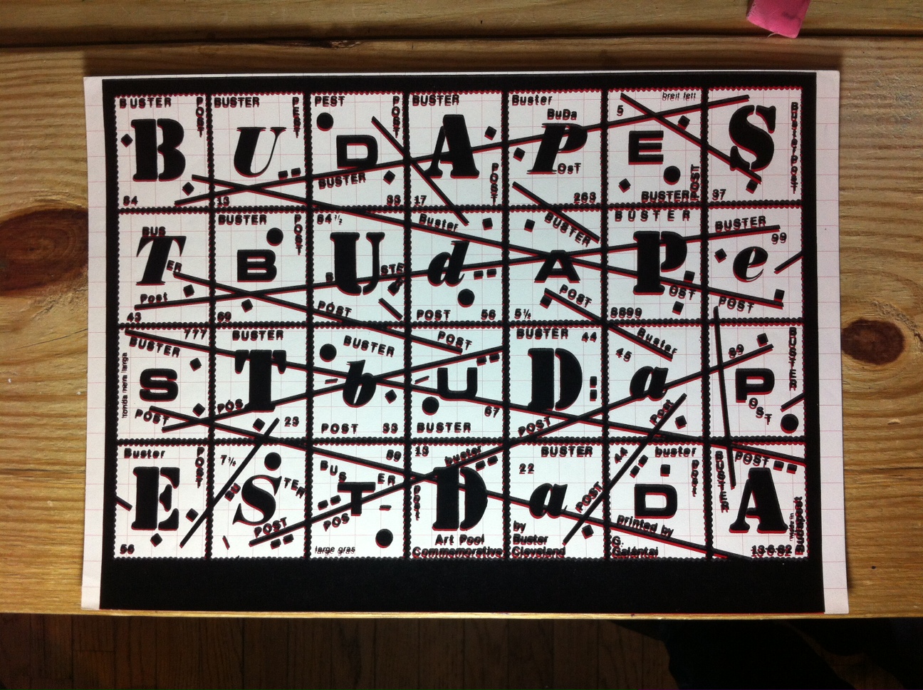 Unperforated, ungummed sheet of 28 stamps printed black with red outline on white graph paper.