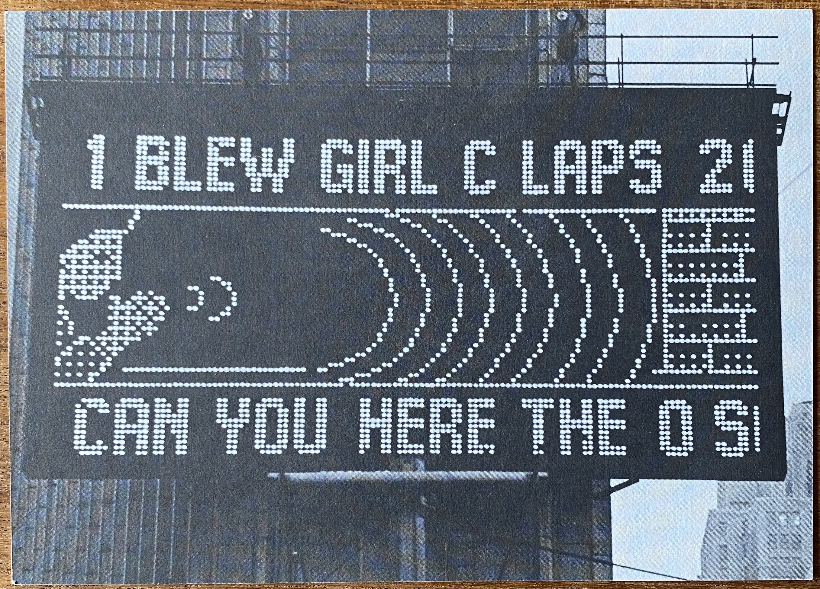 (Candace Hill-Montgomery). Candace Hill. 1 Claps 2 Clapp / Underground Echoes. Computer animation, Spectacolor lightboard, One Times Square, September 1-31, 1987. (Messages to the Public)