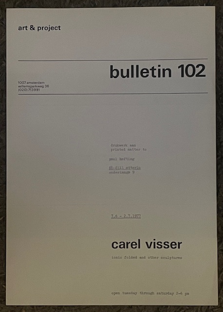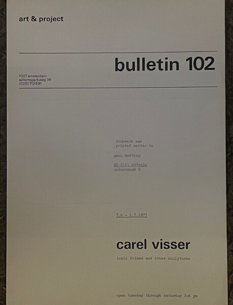 (Carel Visser). Carel Visser. art & project, Amsterdam, 7. 6. – 2. 7. 1977. (Bulletin 102)