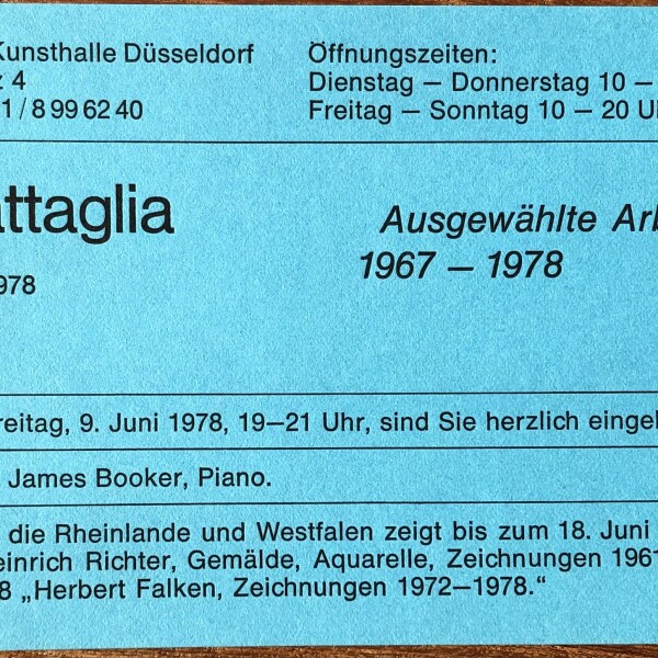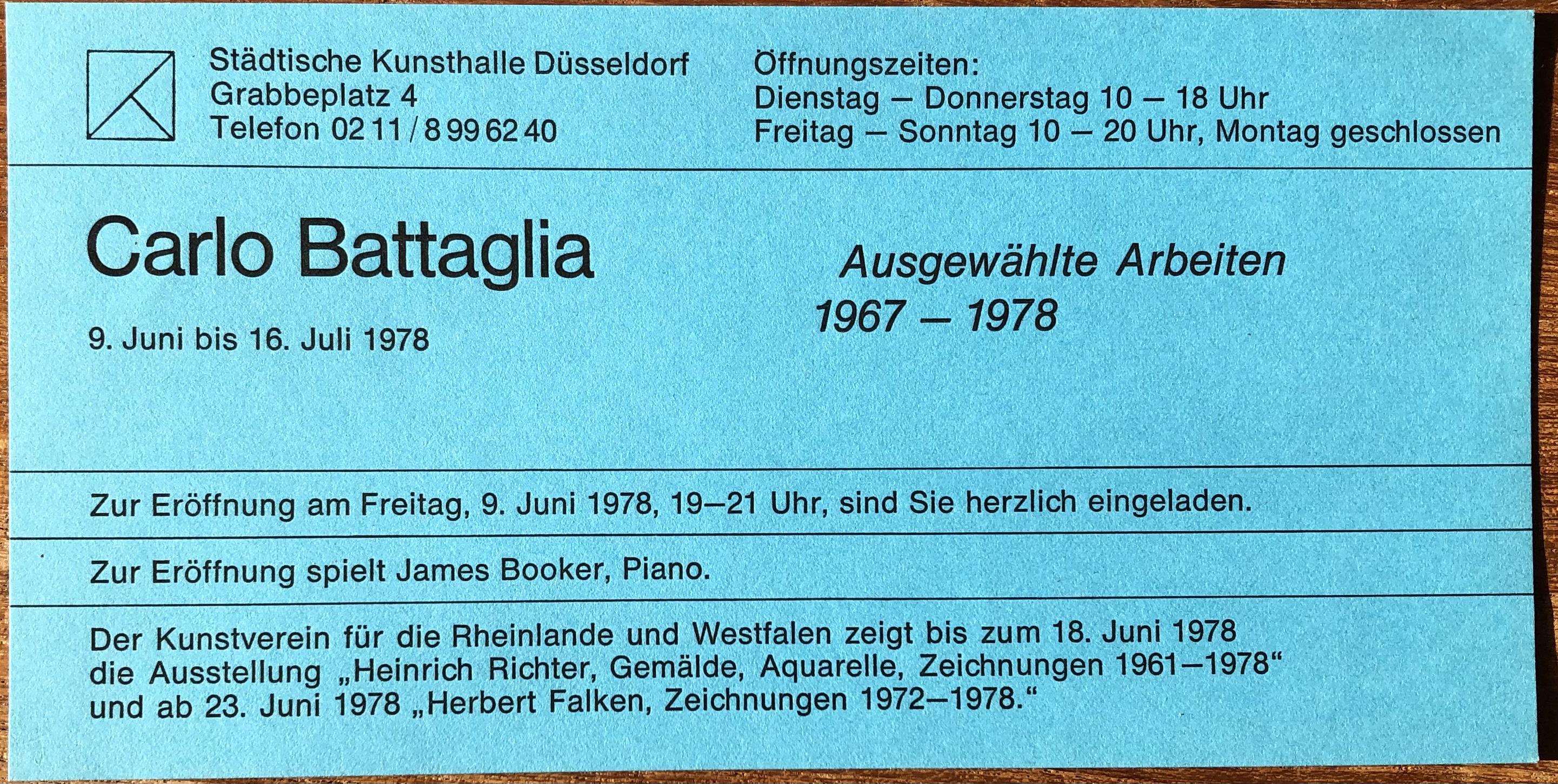 Carlo Battaglia. Ausgewählte Arbeiten, 1967 – 1978. Städtische Kunsthalle Düsseldorf, 9. Juni – 16. Juli 1978