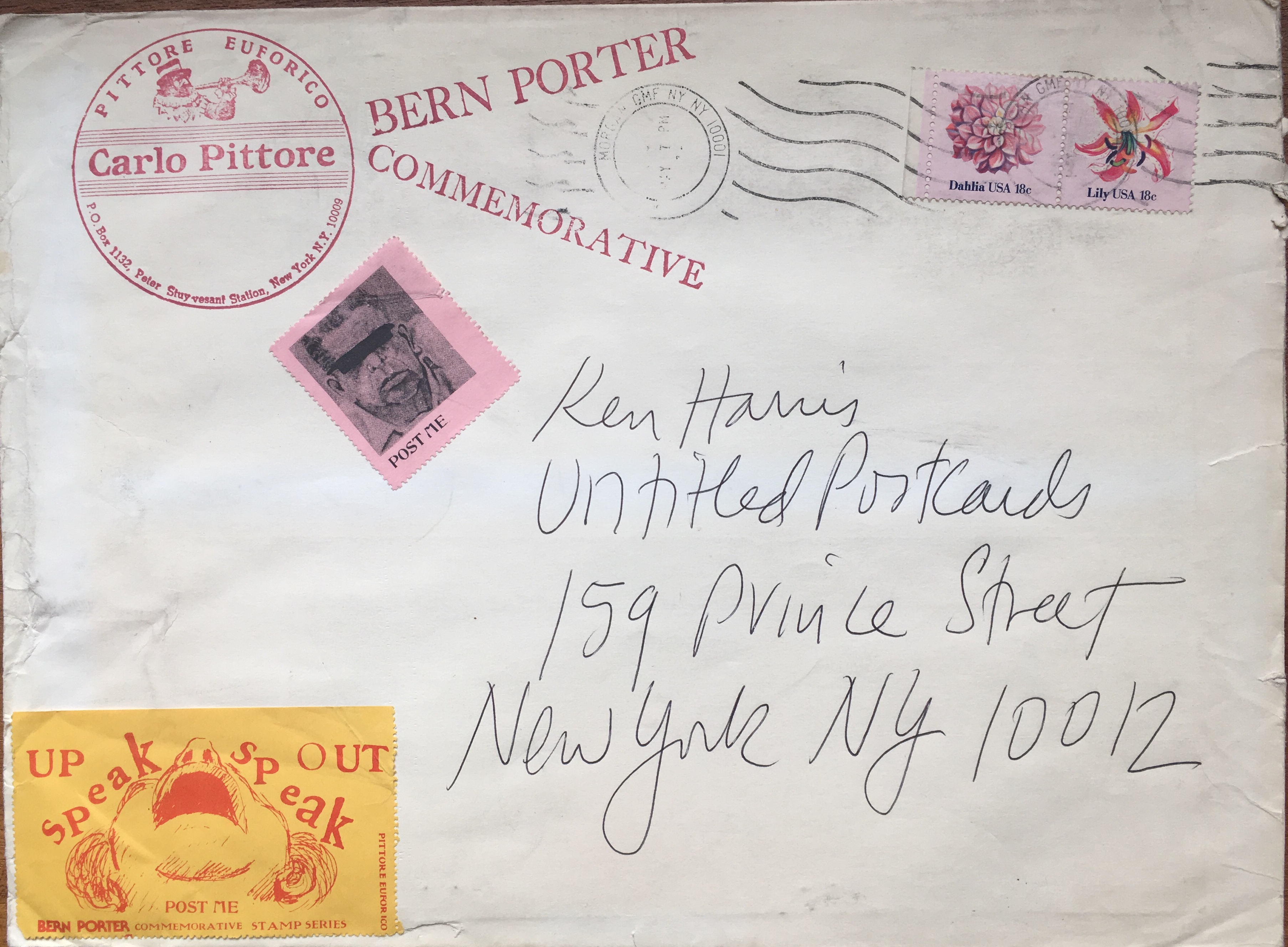 Addressed by Pittore to Ken Harris, co-founder with Michèle Davis (married with photographer Bevan Davis), of the postcard shop Untitled in the East Village, then on Prince Street, in SoHo