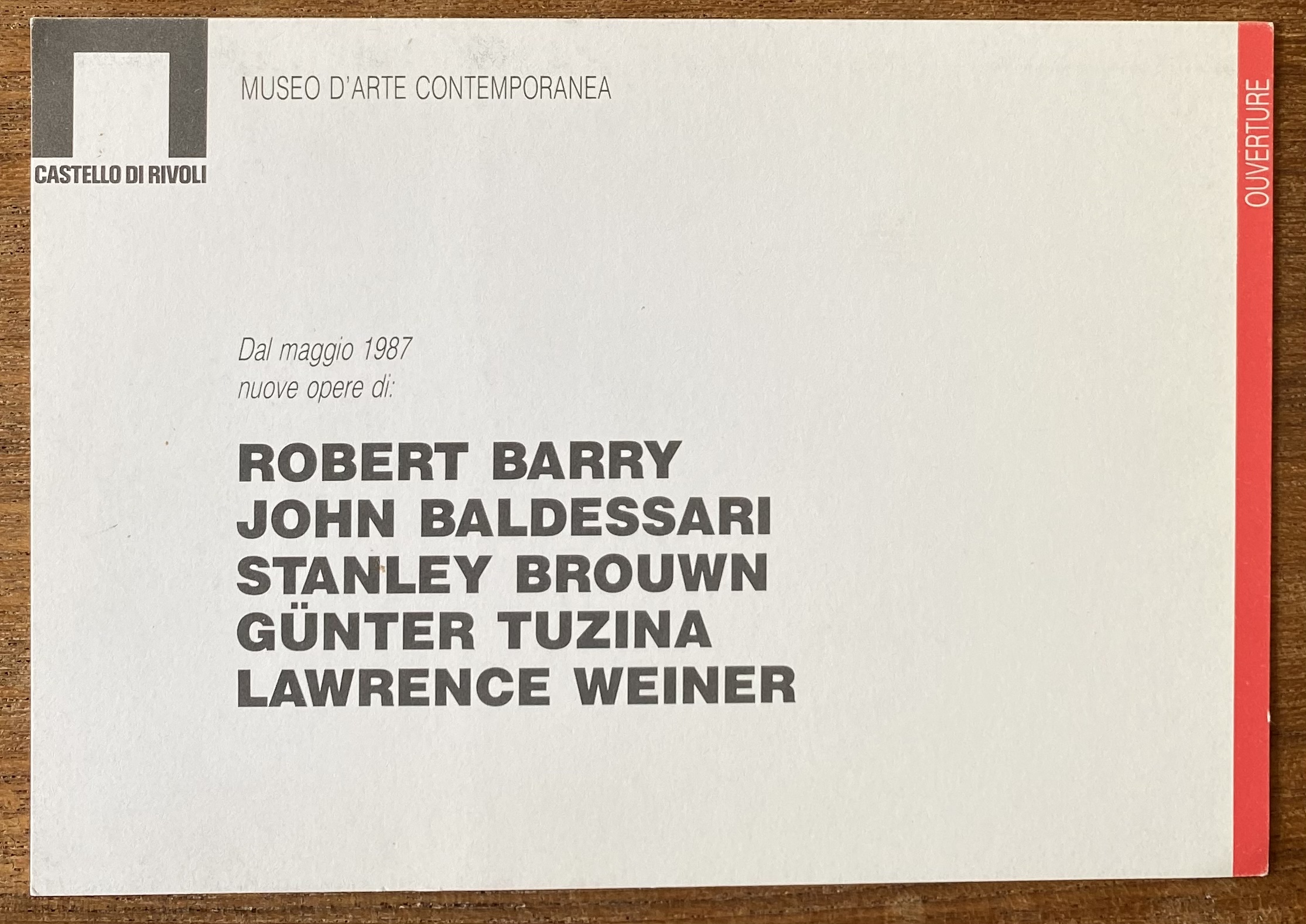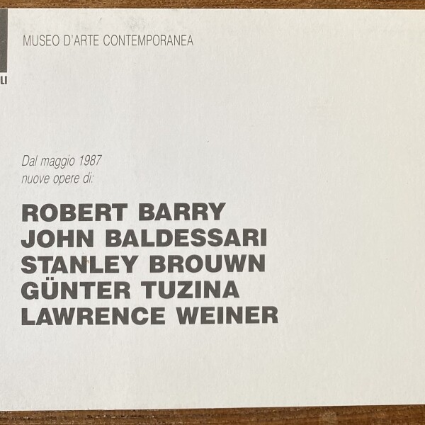 Castello Di Rivoli, Rivioli. Robert Barry, John Baldessari, Stanley Brouwn, Günter Tuzina, Lawrence Weiner. Dal Maggio 1987.