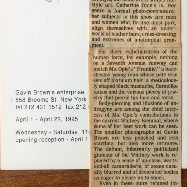 (Catherine Opie). Catherine Opie. Gavin Brown’s enterprise, New York, April 1-22, 1995