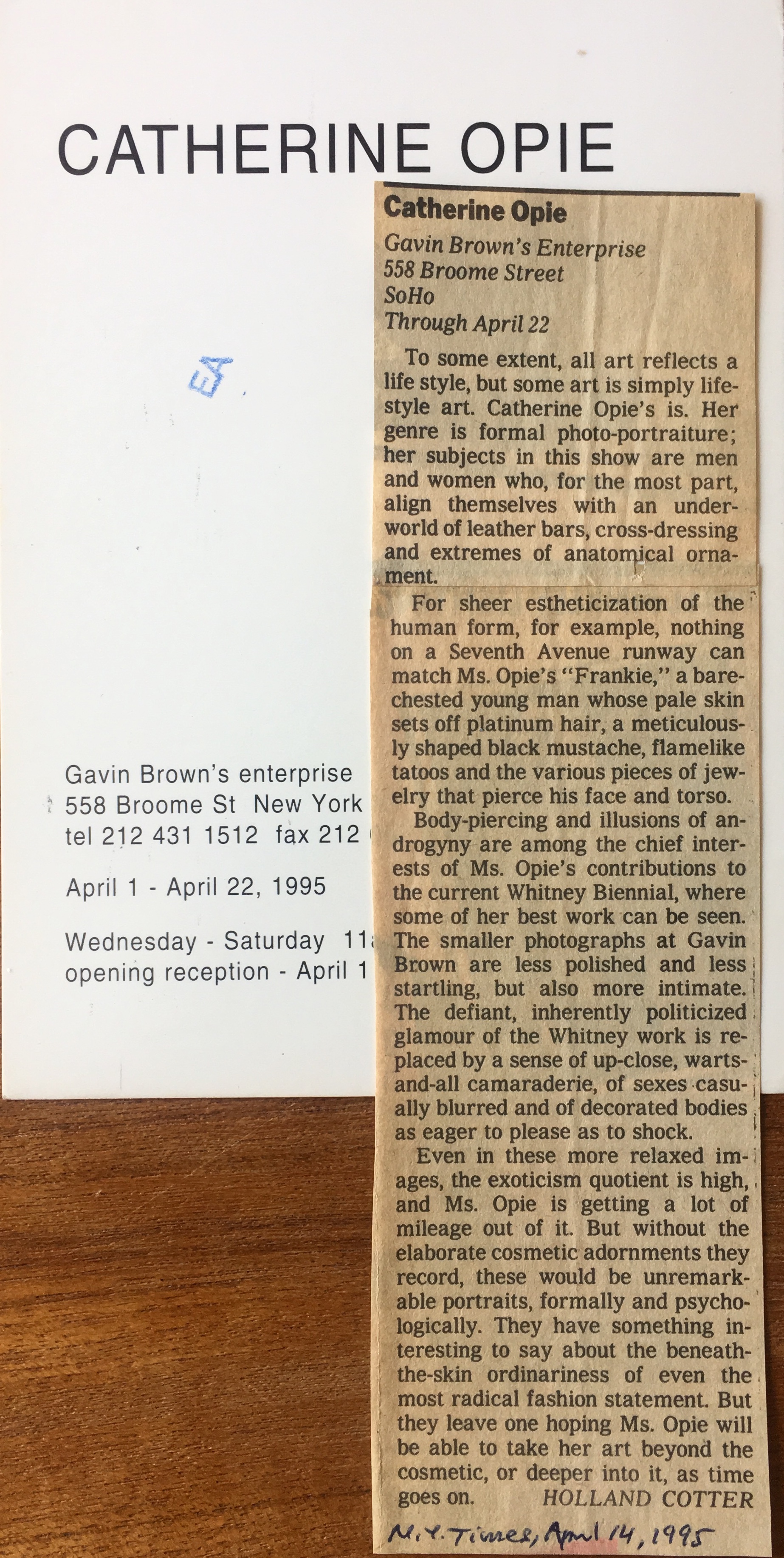 Holland Cotter. Catherine Opie. The New York Times, April 4, 1995