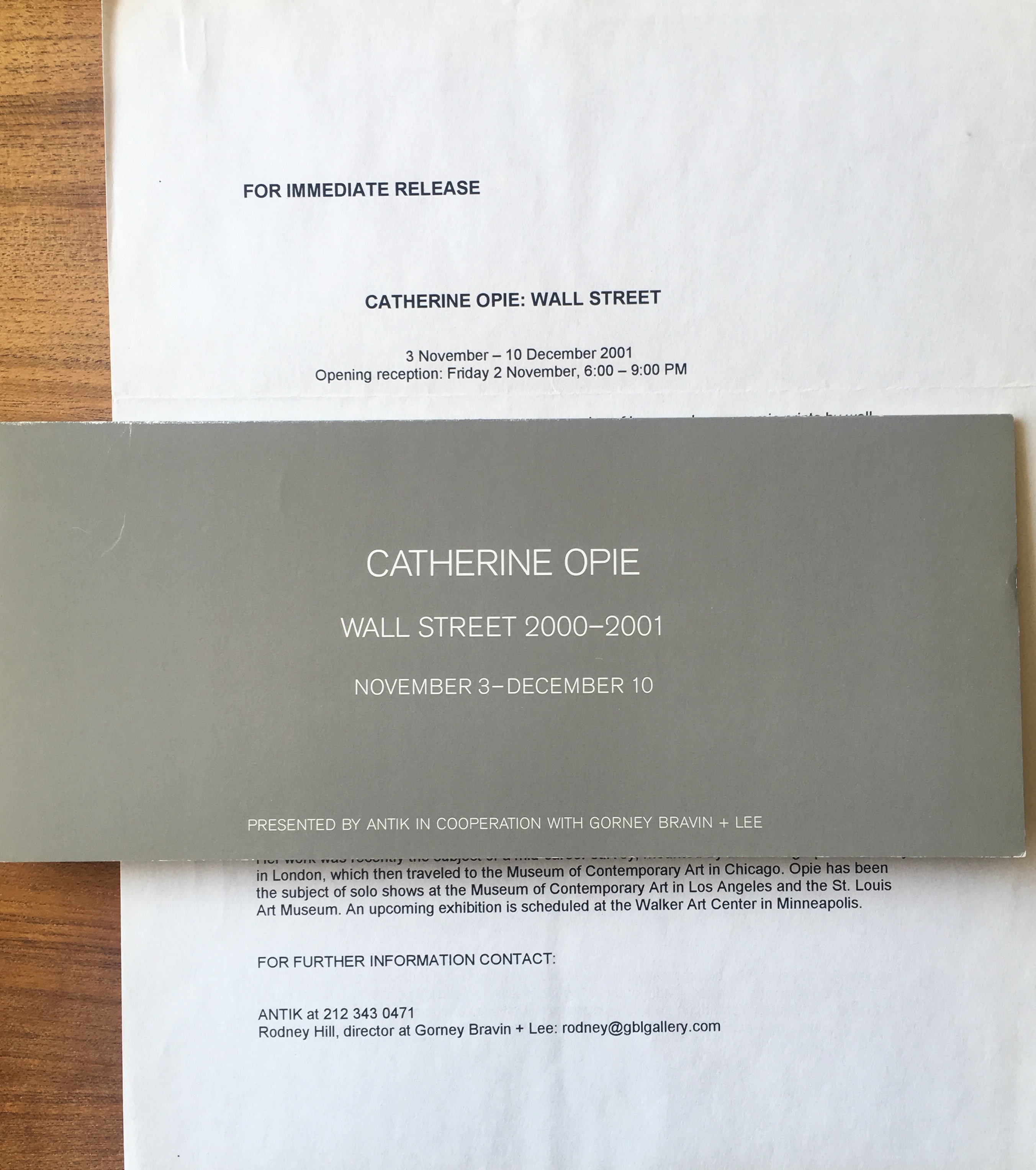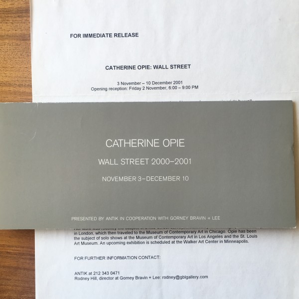 Catherine Opie. Wall Street 2000 – 2001. Antik, [New York], November 2, 3 – December 10, [2001]