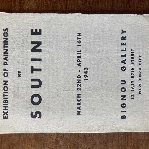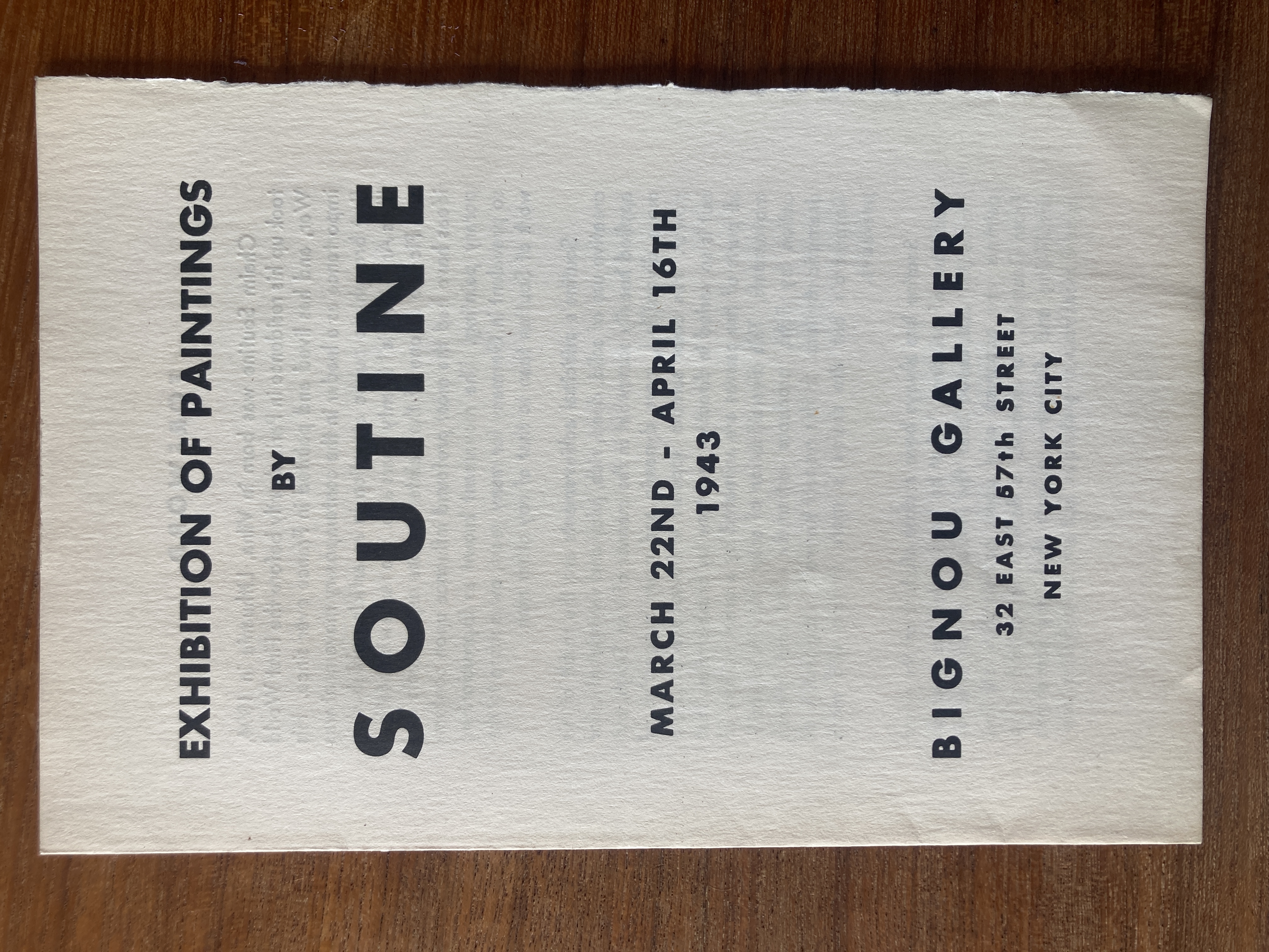 (Chaim Soutine). Exhibition of Paintings by Soutine. Bignou Gallery, New York, March 22 – April 16, 1943