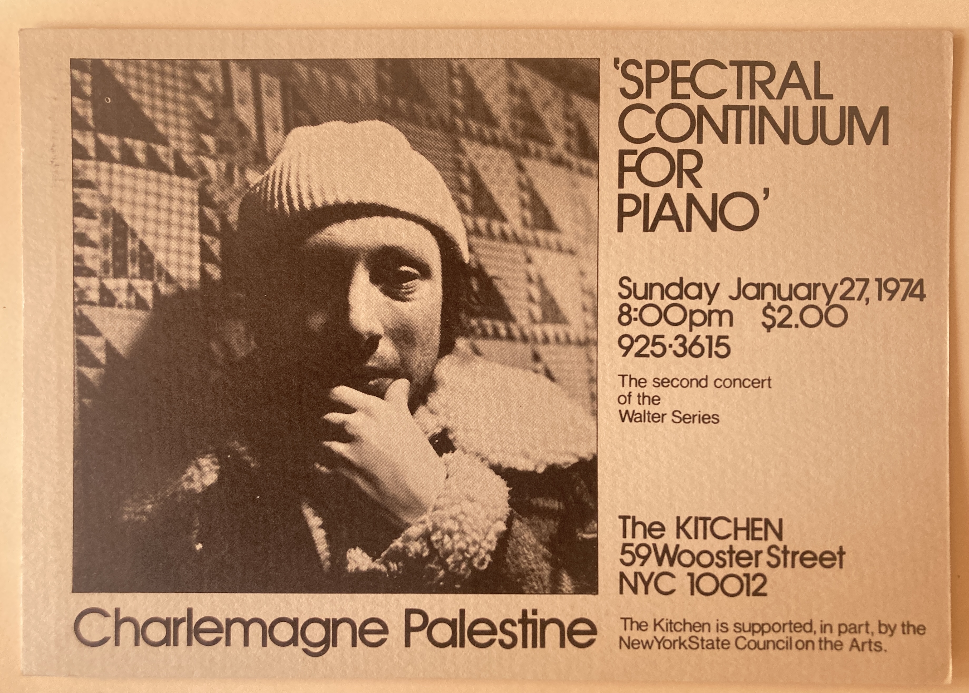 Charlemagne Palestine. “Spectral Continuum for Piano”. The Kitchen, New York, January 27,1974