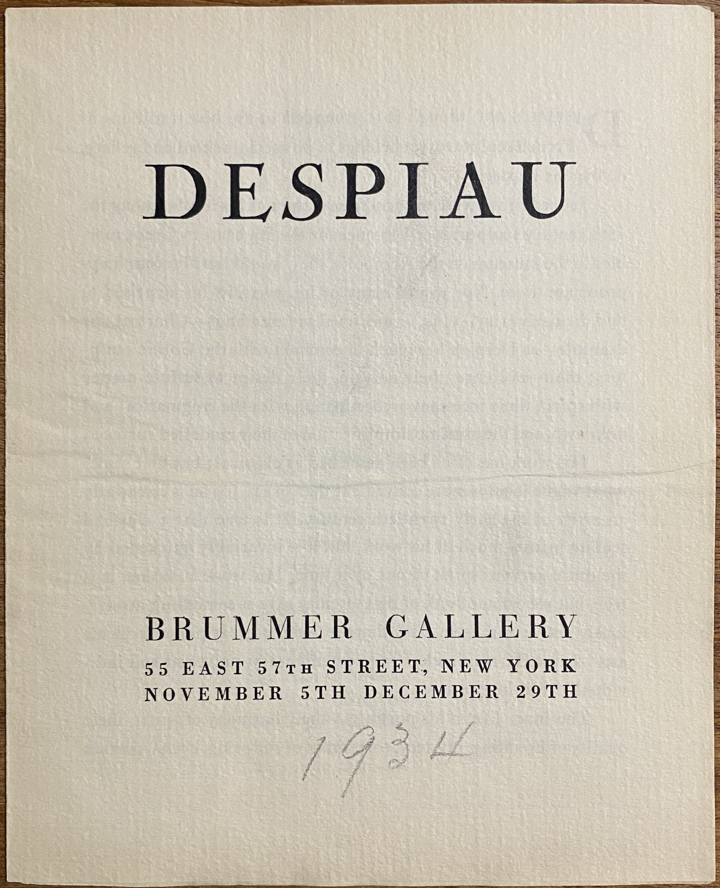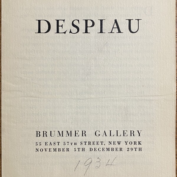 (Charles Despiau). Despiau. Brummer Gallery, New York, November 5 – December 29, 1934