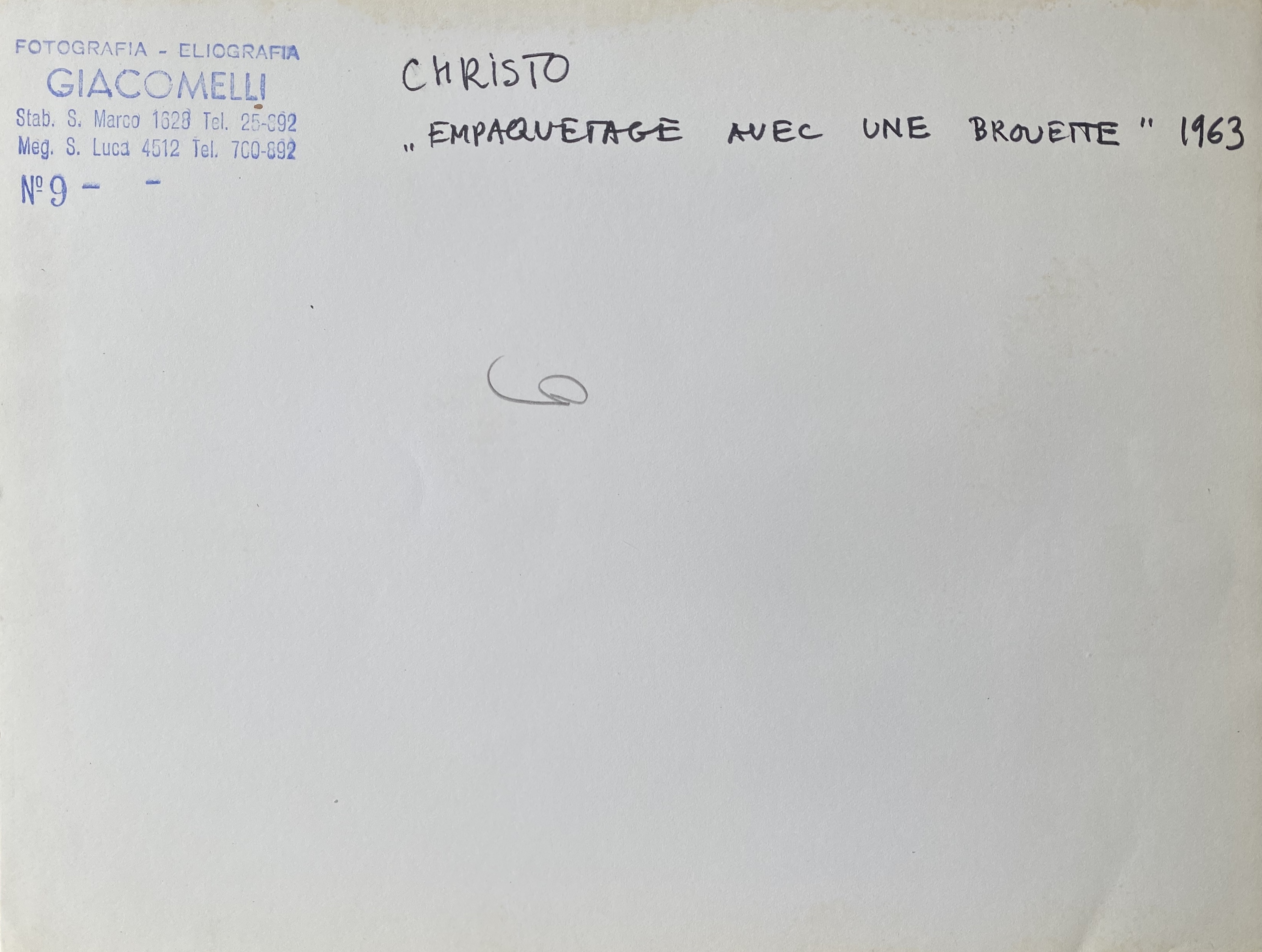 Christo. (Christo Javacheff known as). “Empaquetage avec une brouette” 1963