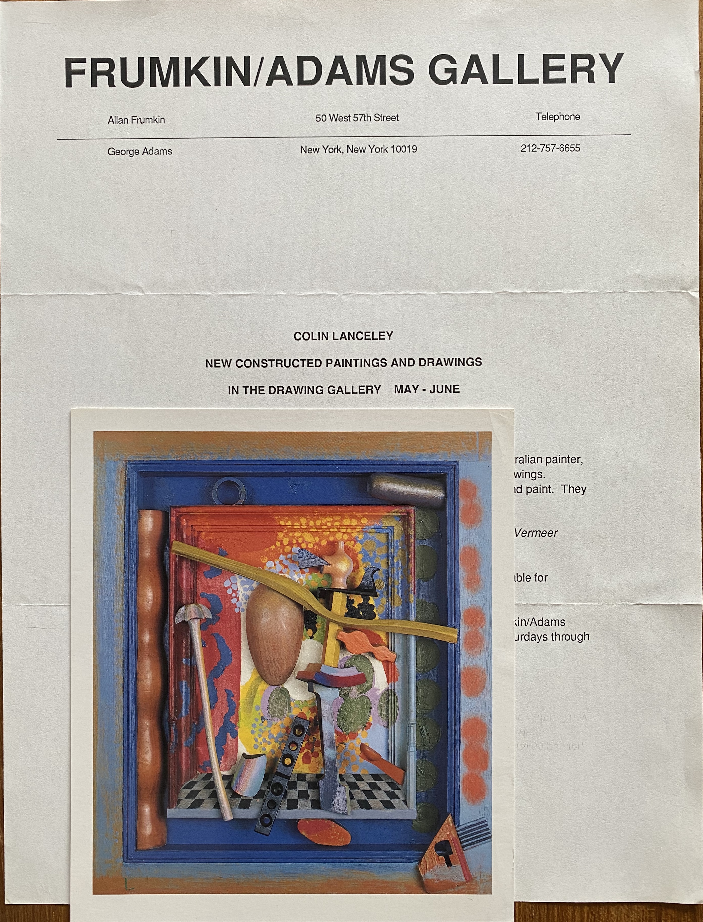 Colin Lanceley. New Constructed Paintings. Frumkin/Adams Gallery, New York, May – June [1994]