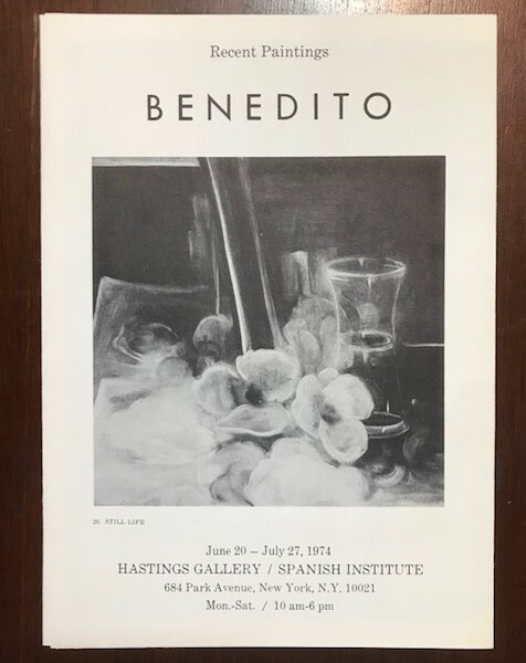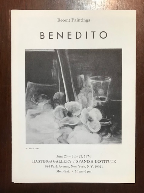 (Concha Sanchez Benedito). Benedito. Recent Paintings. Hastings Gallery, Spanish Institute, New York, June 20-July 27, 1974