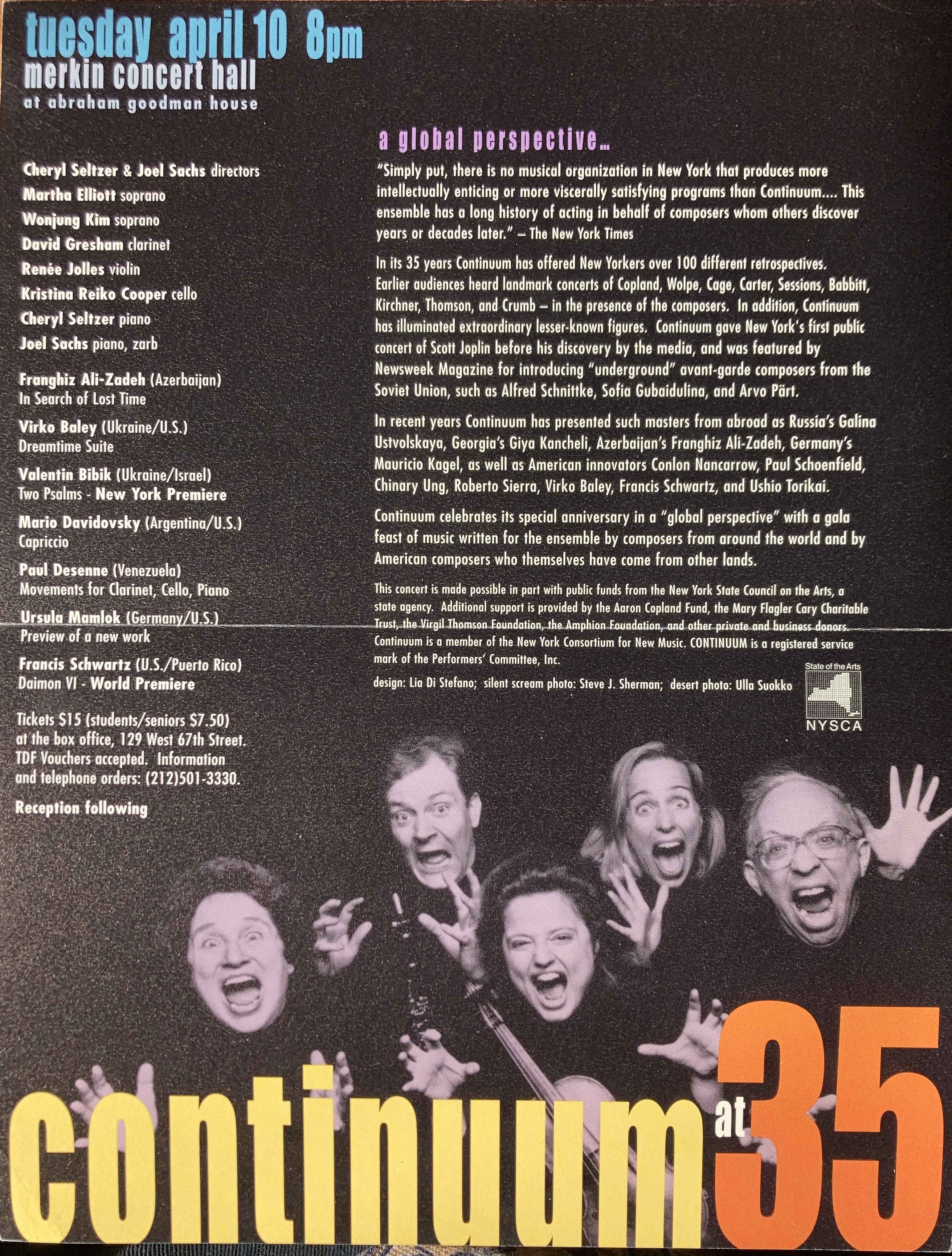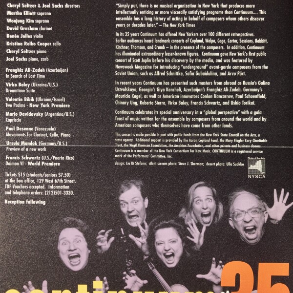 (Continuum). Continuum at 35 / A global perspective. Merkin Concert Hall, [New York], April 1-10, [2001]
