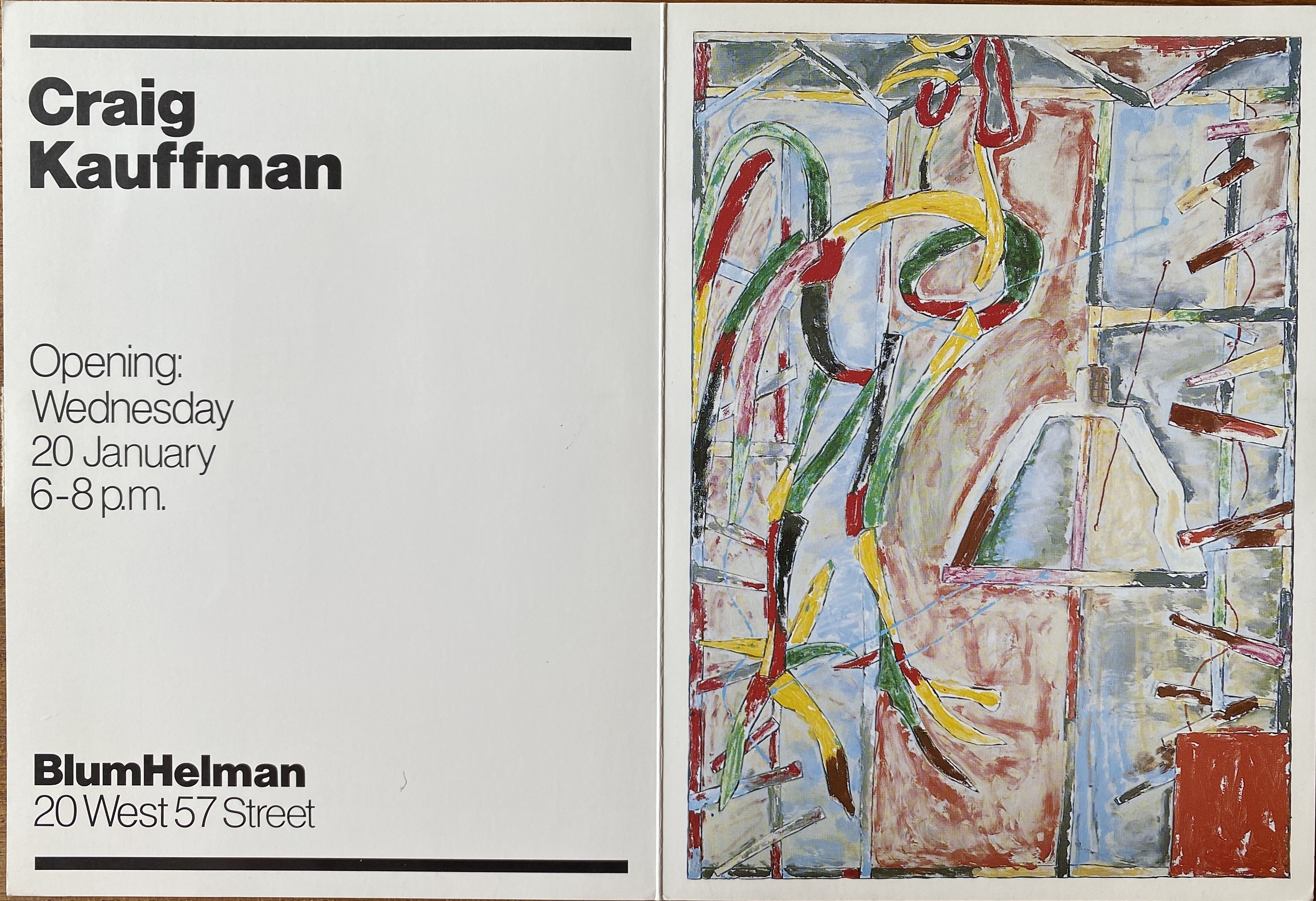 (Craig Kauffman). Craig Kauffman. BlumHelman, [New York], 20 January [1982]