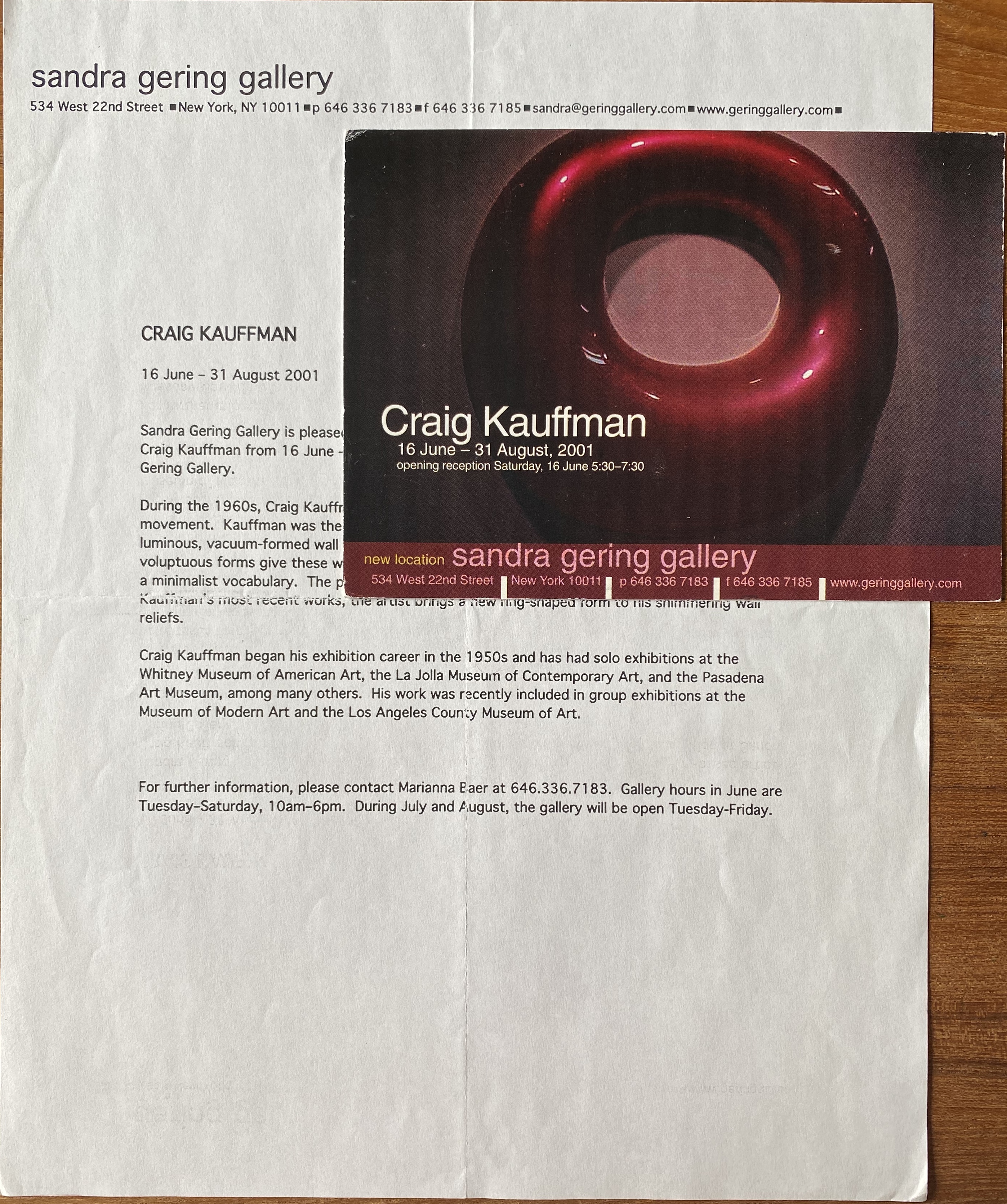 (Craig Kauffman). Craig Kauffman. Sandra Gering Gallery, New York, 16 June – 31 August 2001