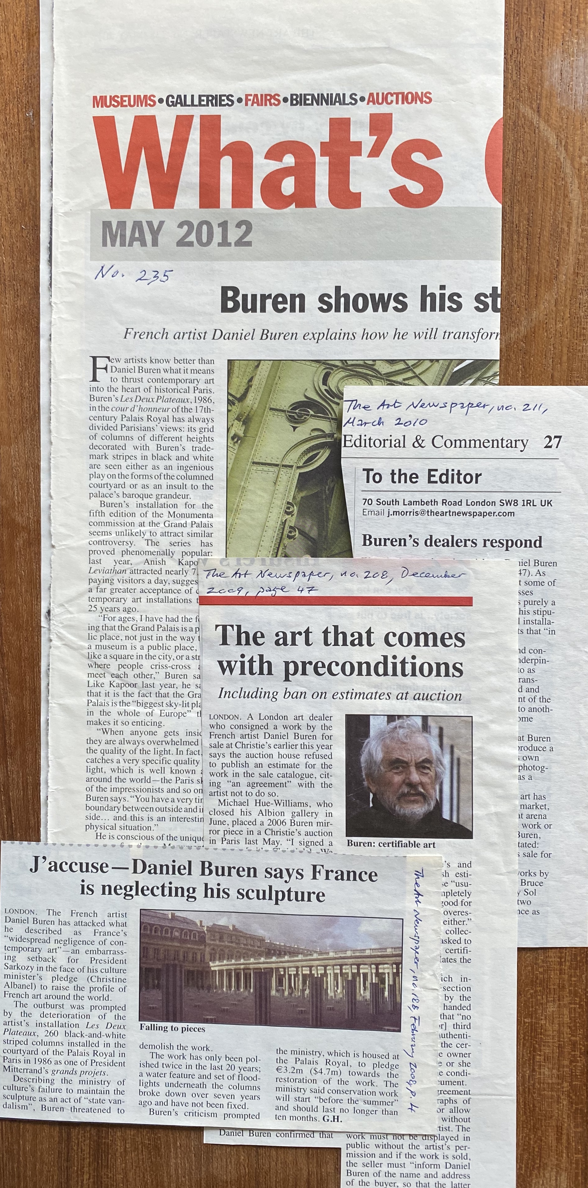 (Daniel Buren). The Art Newspaper. 4 clippings