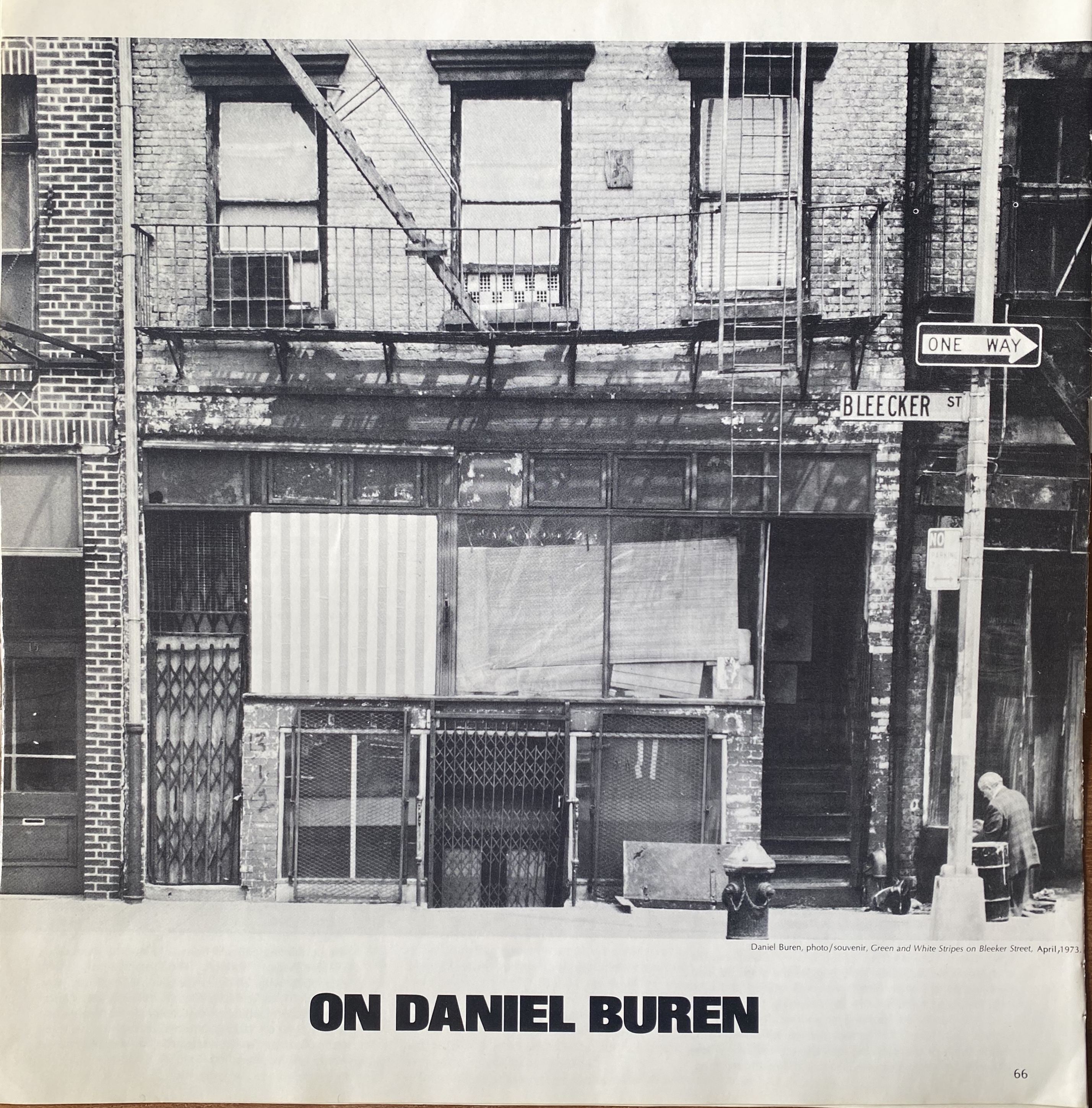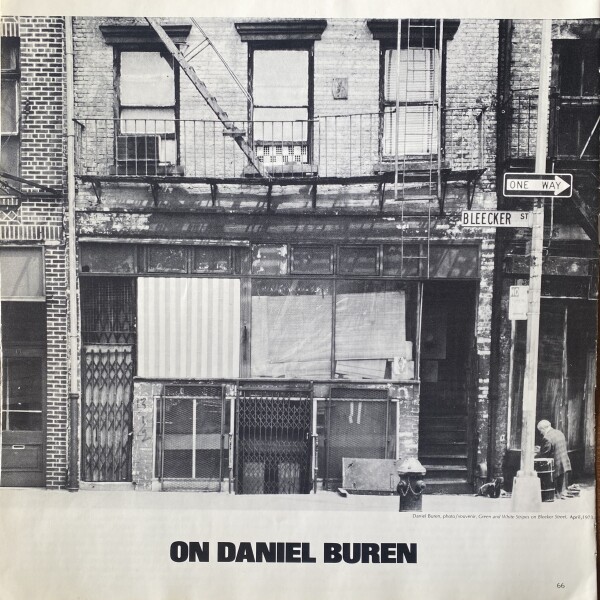 – Roberta Smith. On Daniel Buren. 2 pages (pages 66-67). 1 illustration