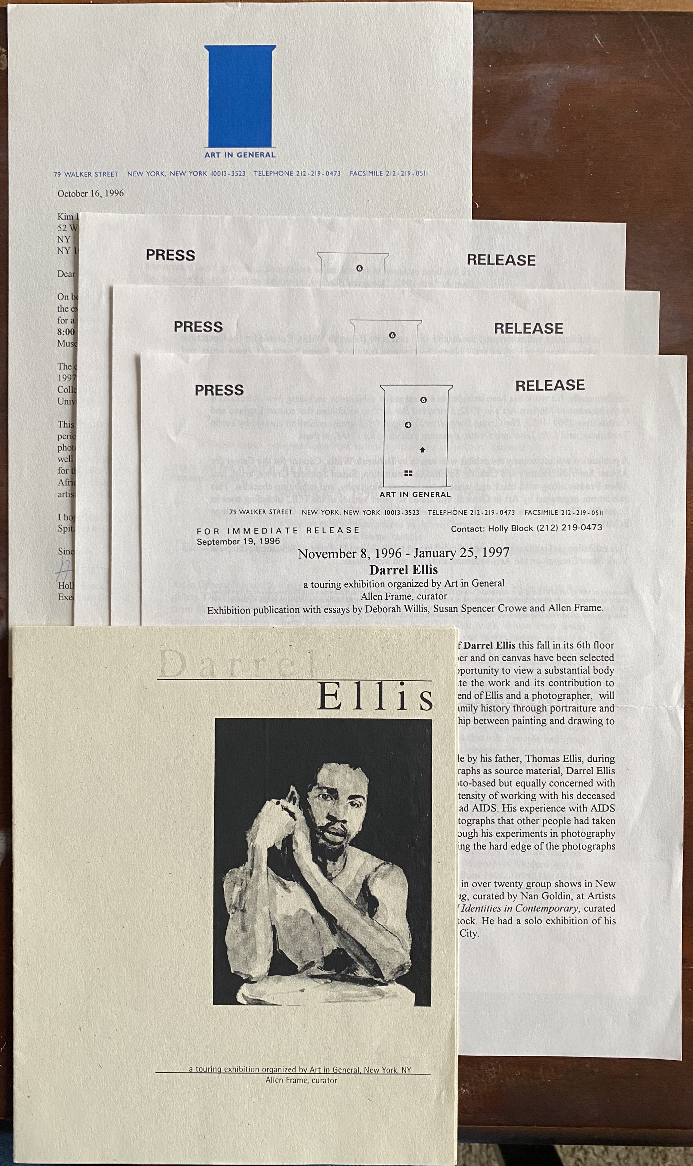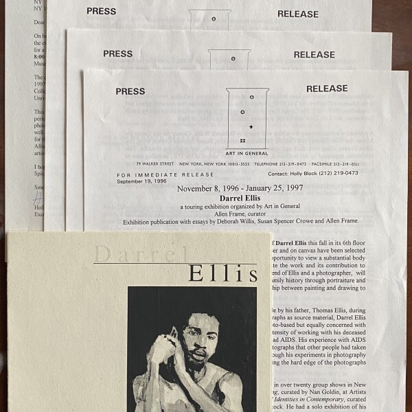 (Darrel Ellis). Darrel Ellis; a touring exhibition organized by Art in General, New York, November 8, [1996] – January 25, 1996 (sic, i.e. 1997)